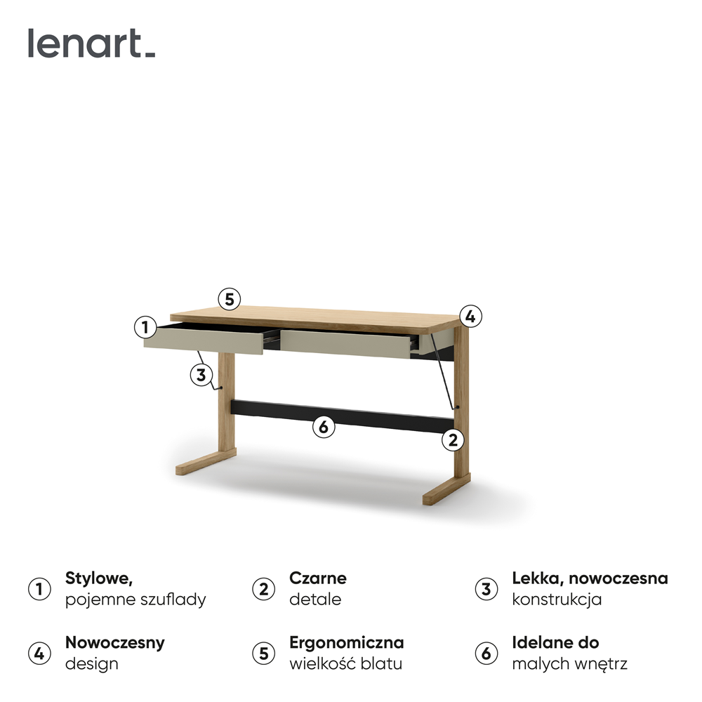✅ Przemyślany design – minimalistyczne formy i funkcjonalne rozwiązania, takie jak szuflady, wnęki czy dodatkowe półki, pomagają zachować porządek na blacie i poprawiają organizację pracy.