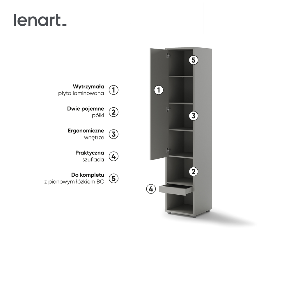 BED CONCEPT BC-07 - szafka 1d1s - szary
