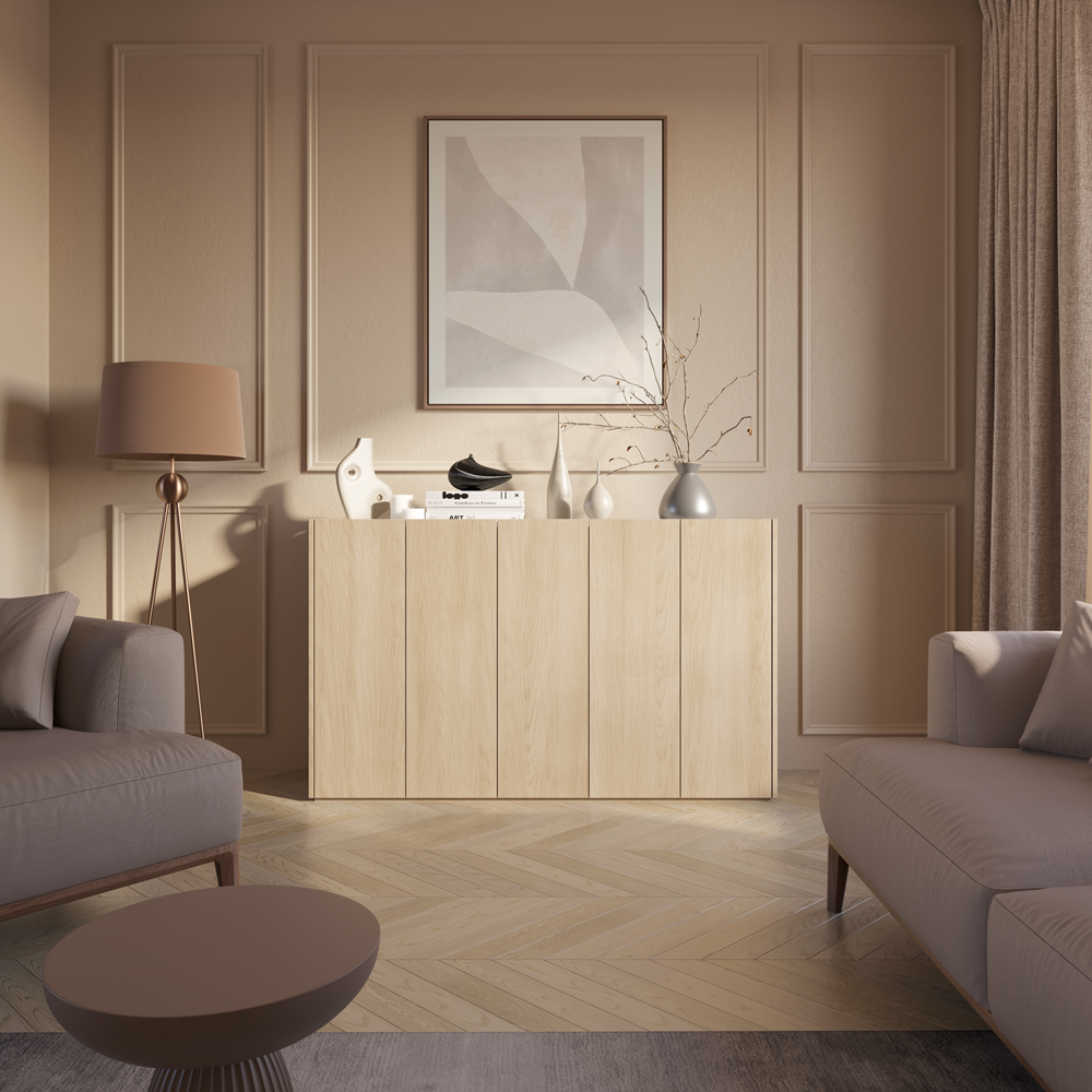 Komoda Easy to symbol elegancji i współczesnego designu. Kolor dębu jest uniwersalny i pasuje do różnych stylów wnętrz, od minimalistycznych po klasyczne. To doskonałe rozwiązanie zarówno do salonu, sypialni, jak i przedpokoju.