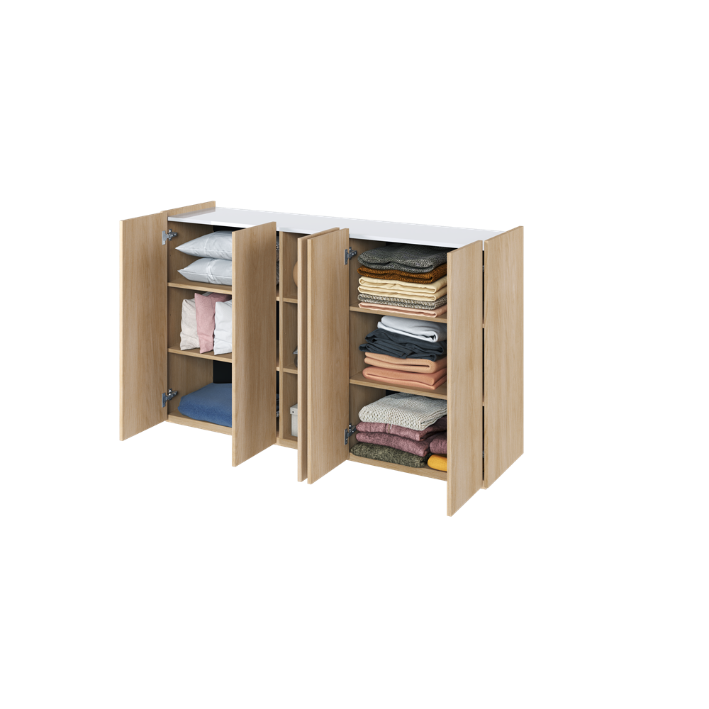 Komoda Easy sprawdzi się w różnych pomieszczeniach. W salonie może służyć jako elegancki mebel pod telewizor, w sypialni jako przestrzeń do przechowywania ubrań i bielizny, a w przedpokoju pomoże zorganizować drobne przedmioty i akcesoria. Jej elegancki wygląd przyciąga wzrok i nadaje pomieszczeniu nowoczesny charakter.