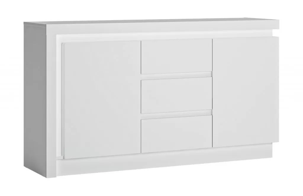 Komoda Lyon została dodatkowo wyposażona w oświetlenie standardowe wnęki. To funkcja, która sprawia, że komoda prezentuje się jeszcze bardziej efektownie i może być świetnym akcentem dekoracyjnym w pomieszczeniu.