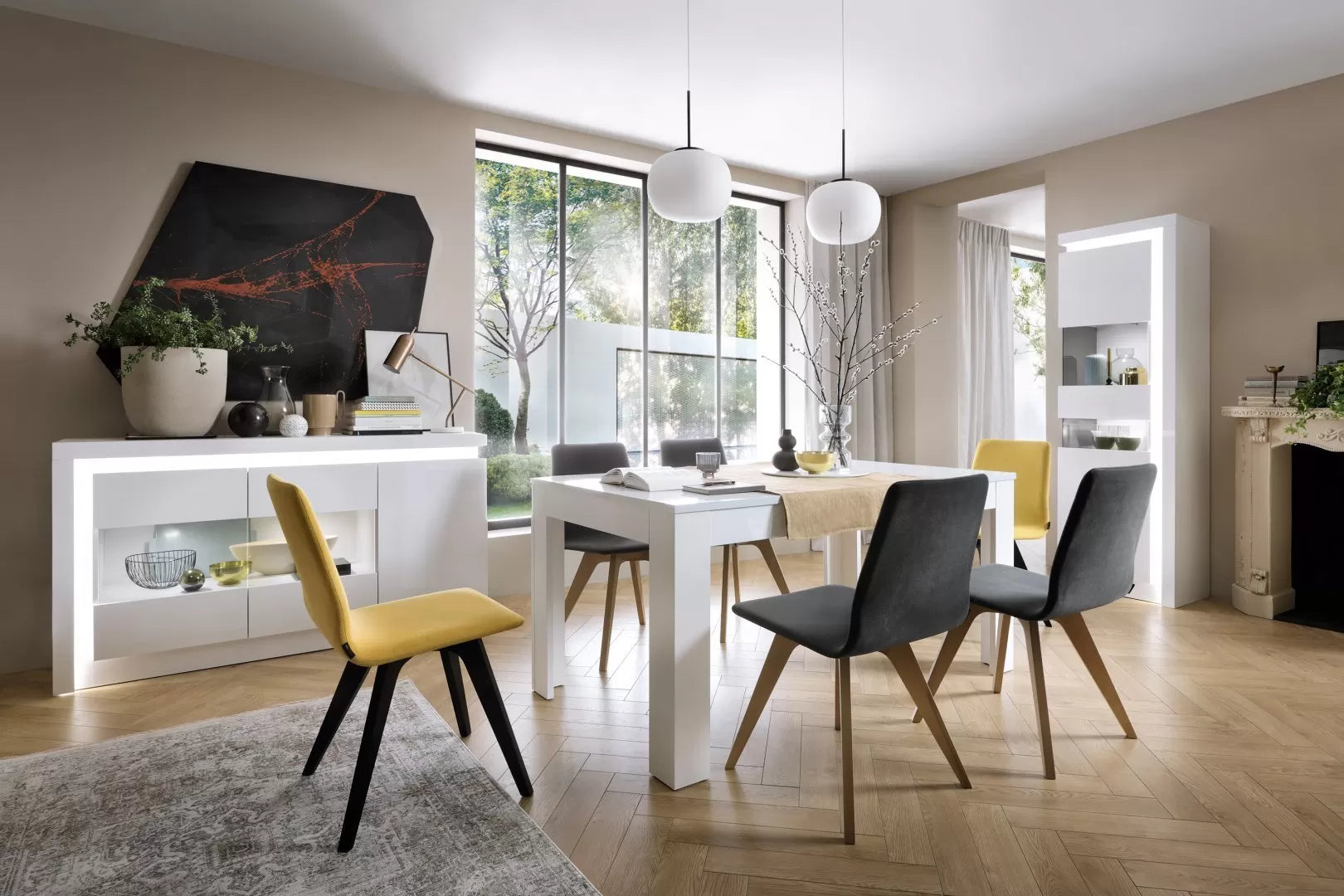 Komoda Lyon to niezwykle elegancki i funkcjonalny mebel, który wyróżnia się nowoczesnym designem i wysoką jakością wykonania. Jej bryła w kolorze biały alpin w połączeniu z białym połyskiem nadają komodzie subtelny, lecz stylowy wygląd.