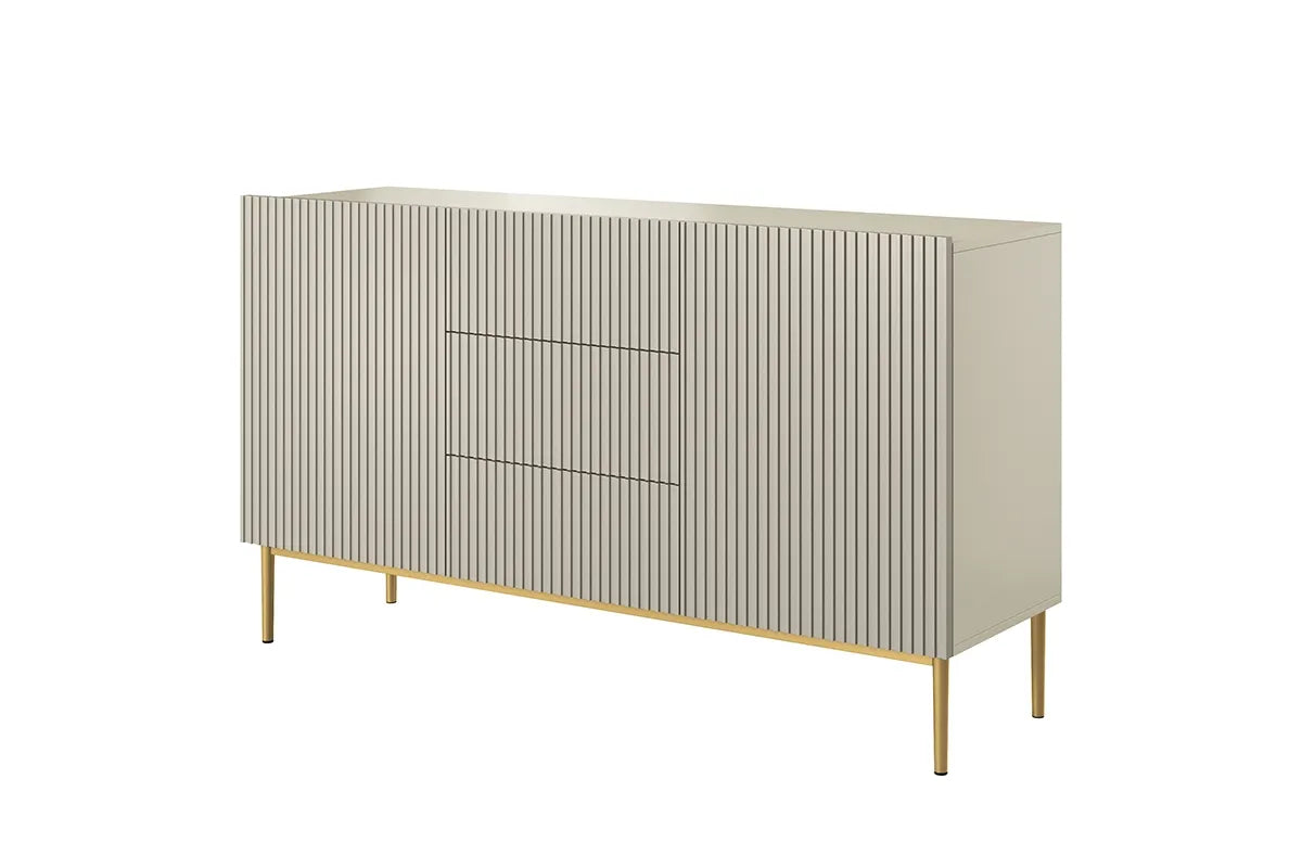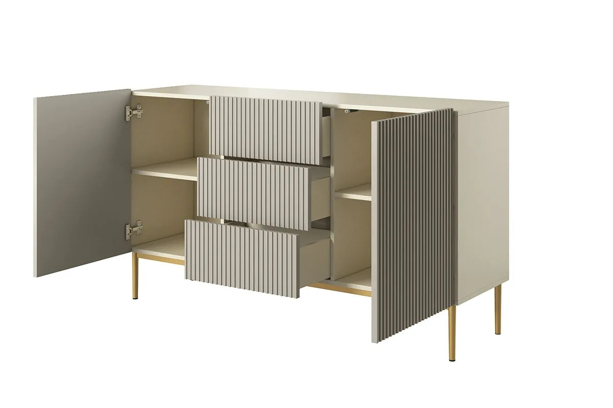 Ryflowane fronty: Ryflowane fronty to kolejna wyjątkowa cecha komody Nicole. Ich struktura dodaje meblowi charakteru i osobowości, tworząc interesujący wizualny efekt. Dzięki temu komoda staje się uniwersalnym elementem, który można dopasować do wielu aranżacji wnętrz.