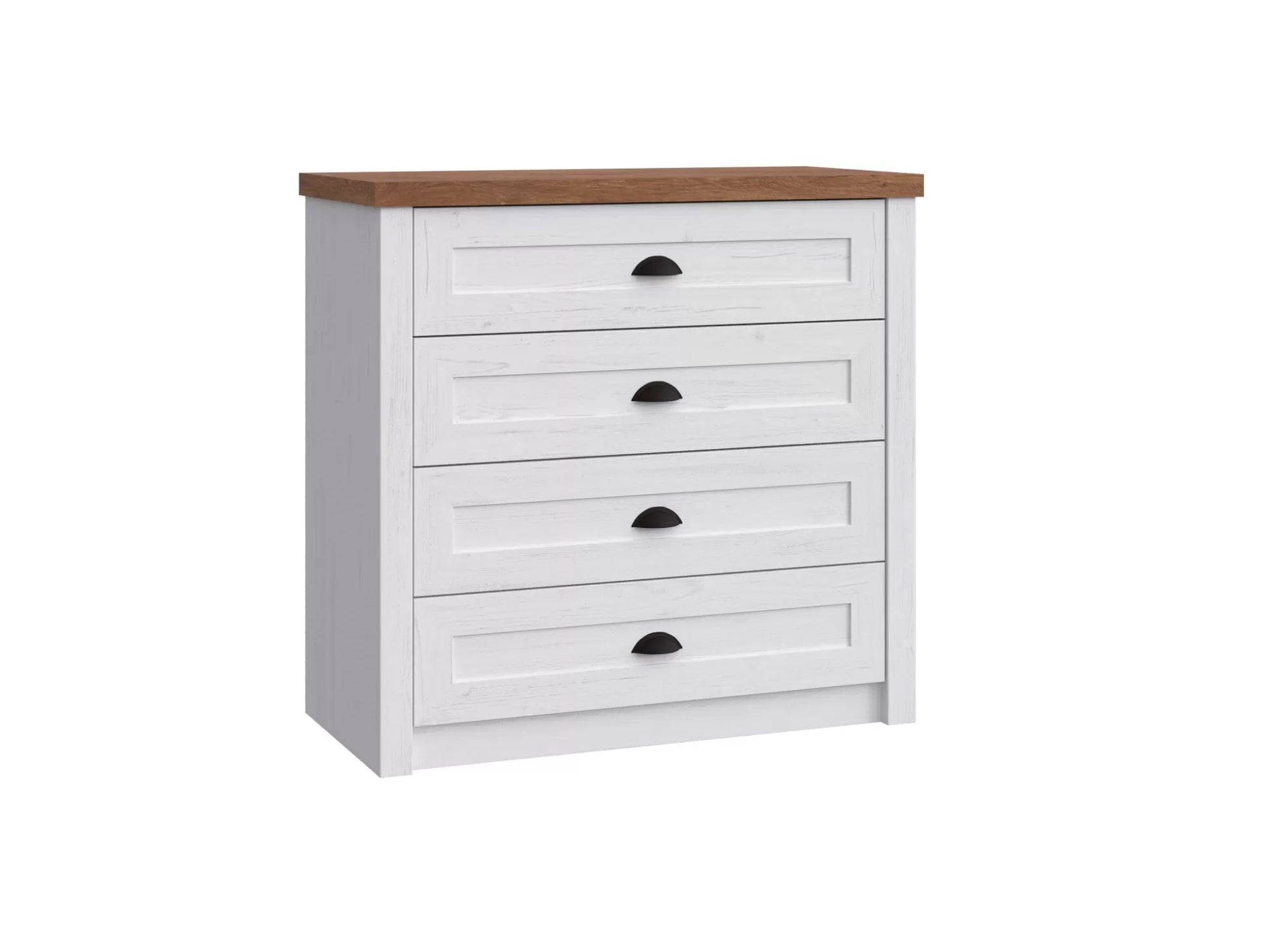 Komoda Prowansja ma cztery szuflady, które zapewniają wiele miejsca do przechowywania różnych przedmiotów. Szuflady są praktyczne i łatwe w otwieraniu i zamykaniu. Można w nich przechowywać ubrania, bieliznę, dokumenty, a także inne drobne przedmioty.