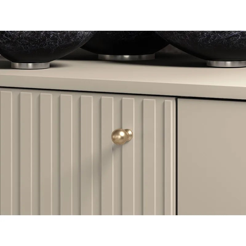Komoda Sophie posiada uchwyty ze szczotkowanego złota, które dodają delikatnego blasku i podkreślają jej ekskluzywny charakter.