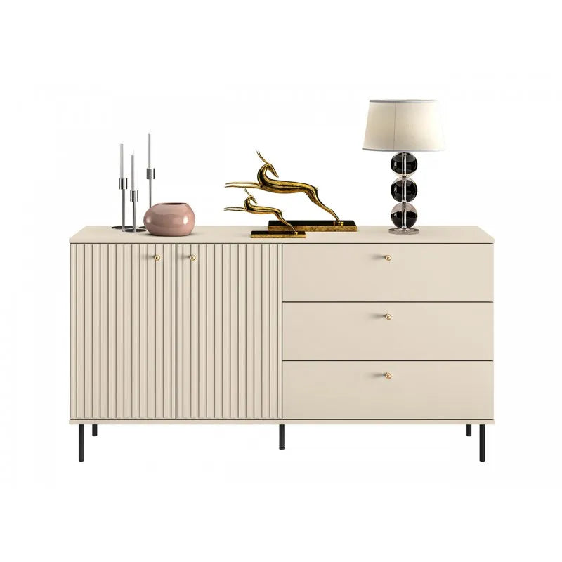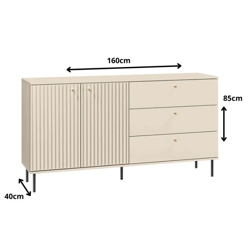 Komoda Sophie to stylowy i funkcjonalny mebel, który doskonale sprawdzi się w każdym wnętrzu. Jej trzy szuflady z pełnym wysuwem zapewniają dużo miejsca do przechowywania różnych przedmiotów, od ubrań po akcesoria.