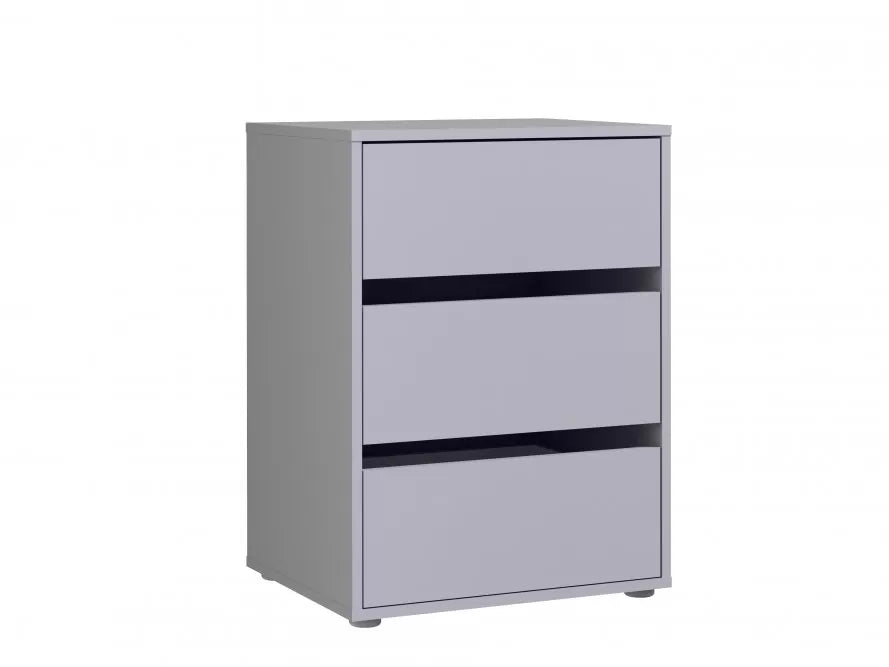 Trzy kompaktowe szuflady umożliwią przechowywanie różnorodnych przedmiotów, takich jak bielizna, drobna garderoba i różnego rodzaju akcesoria. Kiedy komoda zostanie zestawiona z innymi meblami, stworzy spójną aranżację w pomieszczeniu, na przykład w sypialni.
