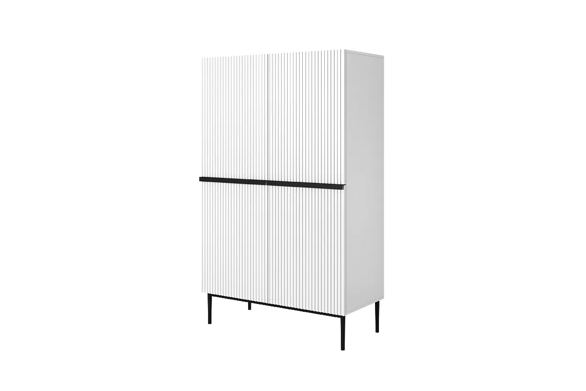 Front kredensu wykonany jest w modnym ryflowanym wzorze, co nadaje meblowi wyjątkowego charakteru. Ozdobna listwa na froncie to elegancki detal, który dodaje meblowi ekskluzywnego wyglądu.