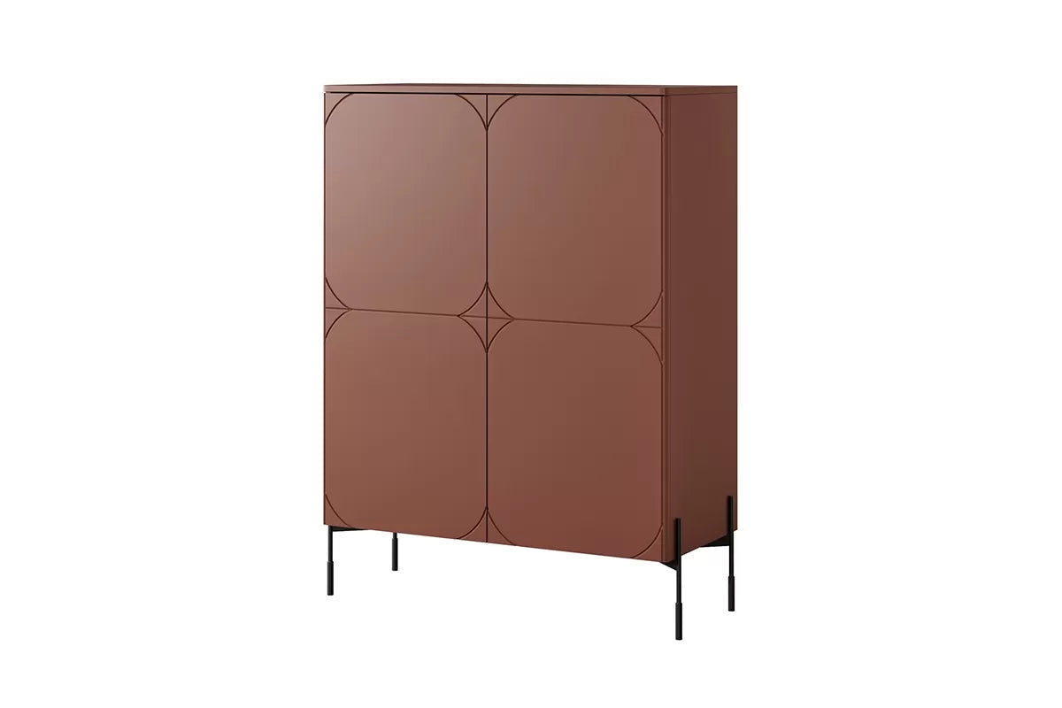 Kredens Sonatia w głębokim odcieniu burgundu to imponujący mebel, który łączy w sobie funkcjonalność, elegancję i nowoczesny design. Jego forma przypominająca wysoką komodę dwudrzwiową sprawia, że jest to zarówno praktyczne rozwiązanie do przechowywania, jak i efektowny element dekoracyjny.