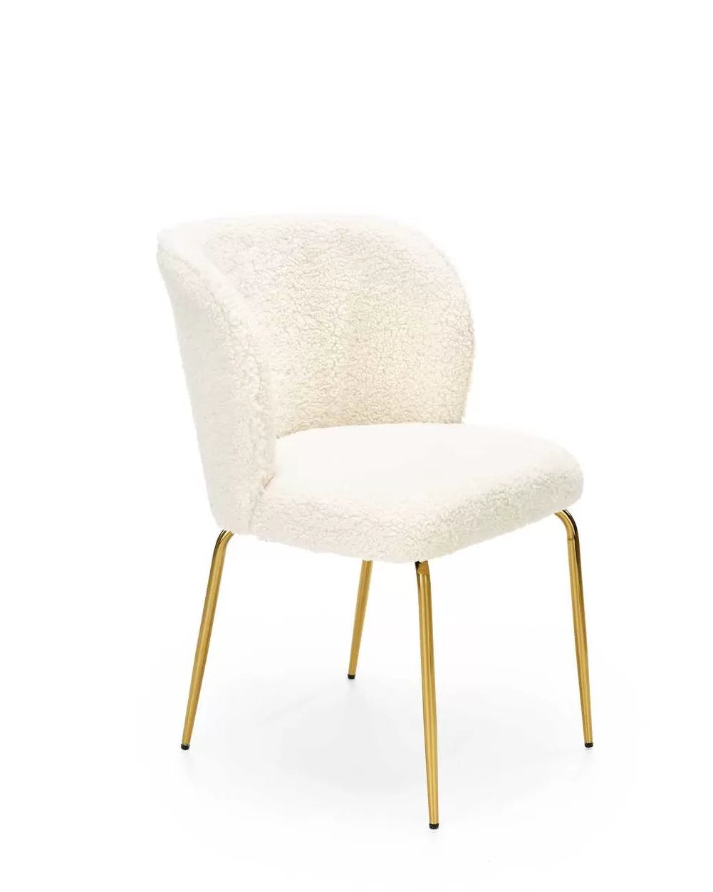 Tapicerka wykonana z tkaniny boucle jest miękka, delikatna w dotyku i posiada wyjątkową fakturę, co nadaje krzesłu unikalnego wyglądu.