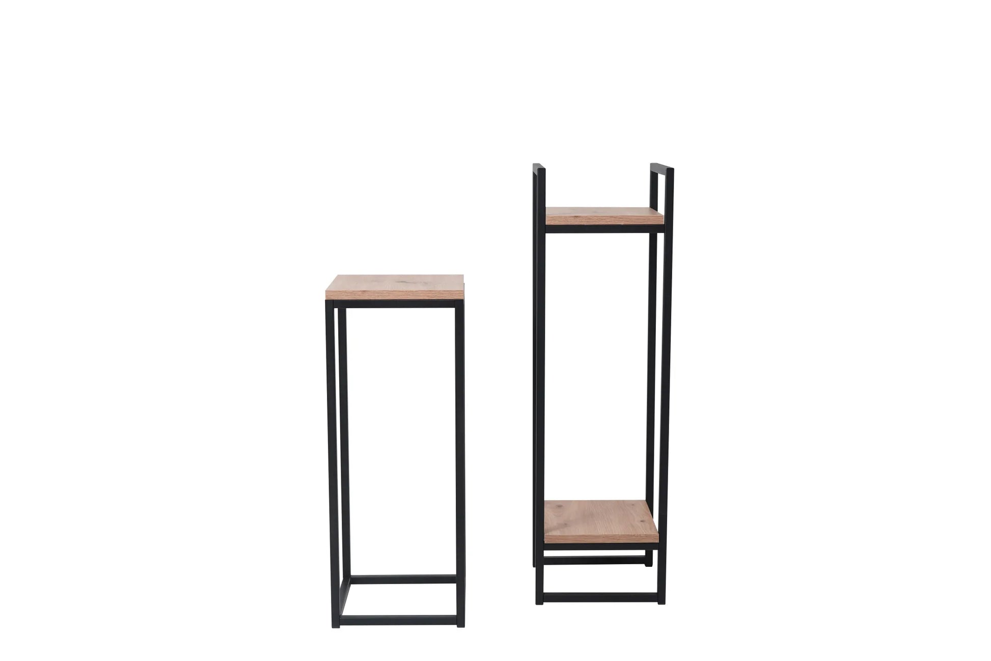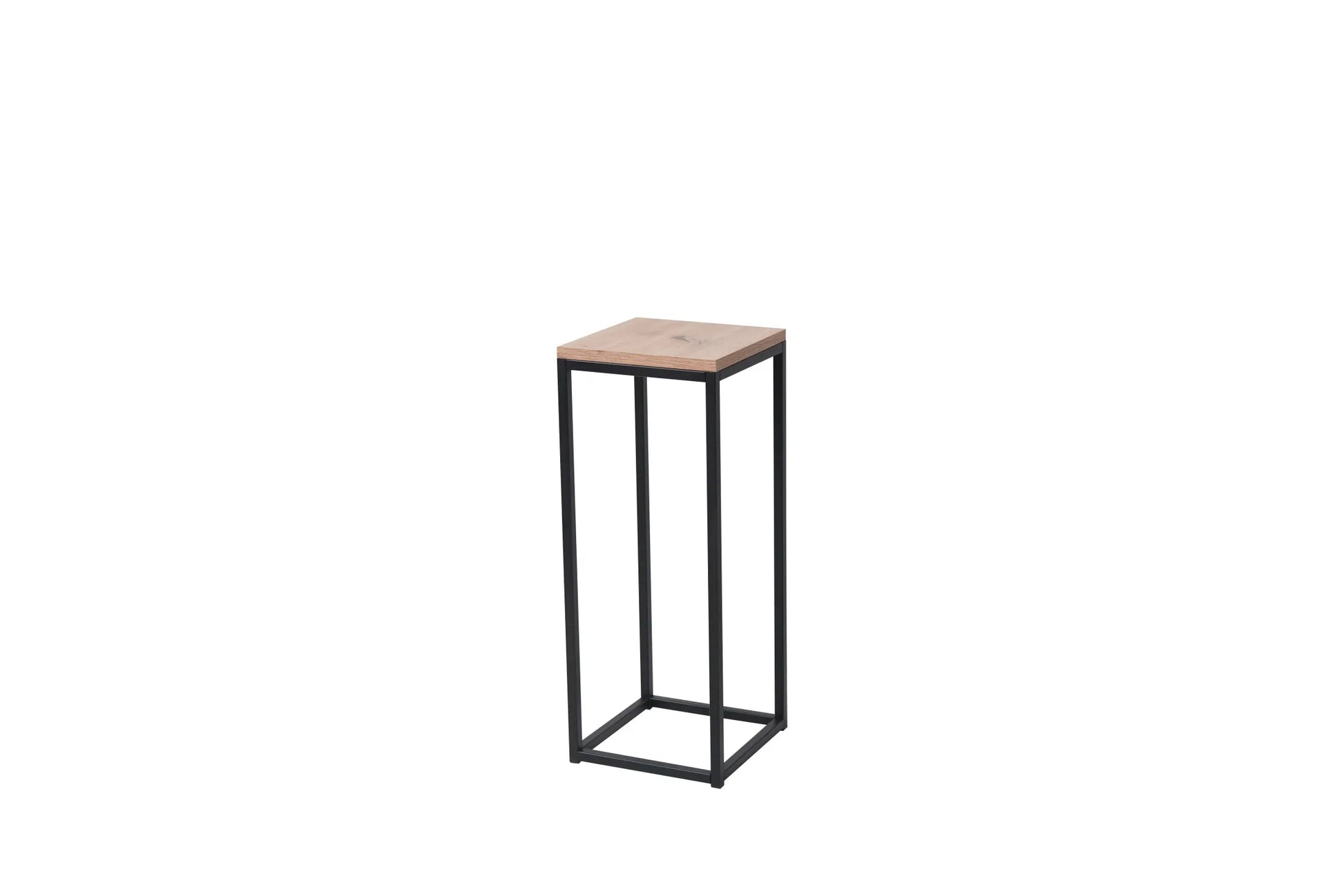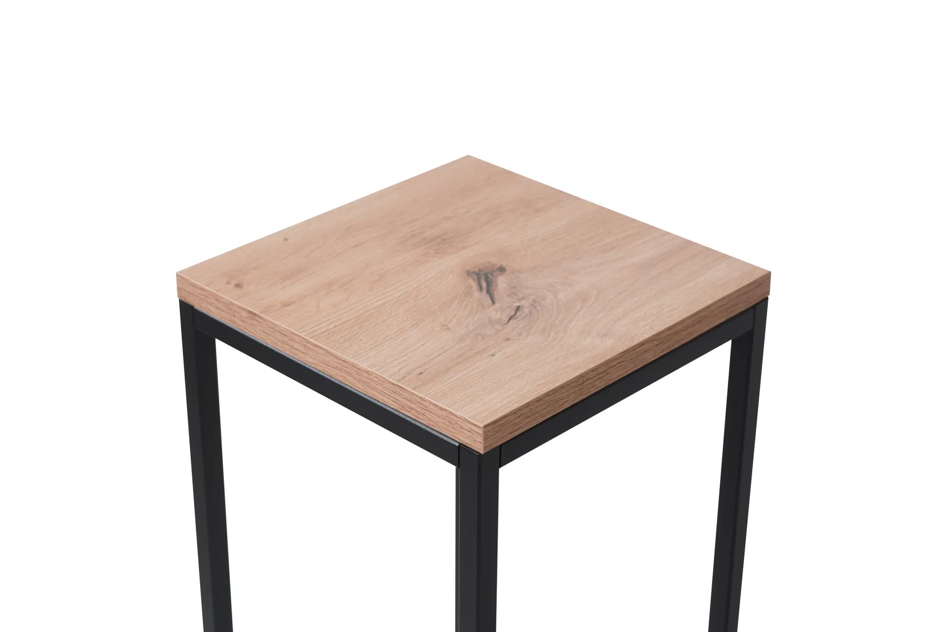 Kwietnik Loft to nowoczesny i stylowy dodatek do wnętrz w klimacie industrialnym. Posiada półkę wykonaną z płyty meblowej w kolorze dąb craft, co nadaje mu eleganckiego, naturalnego wyglądu. Jego solidny, metalowy stelaż o wysokości 60 cm oraz szerokości i głębokości 24 cm zapewnia trwałość i stabilność, a także idealnie nadaje się do eksponowania dwóch doniczek.