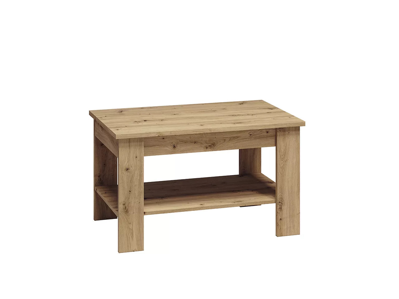 Stolik kawowy Artis posiada praktyczną półkę umieszczoną pod blatem, która zapewnia dodatkową przestrzeń do przechowywania czasopism, pilotów telewizyjnych czy innych drobnych przedmiotów.