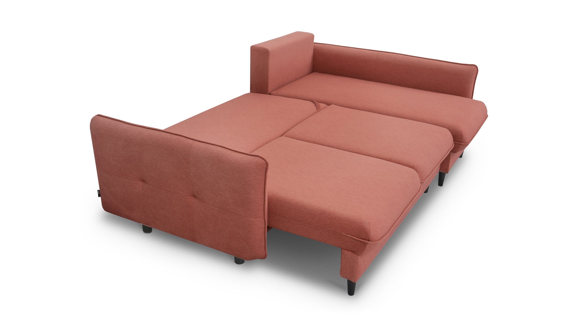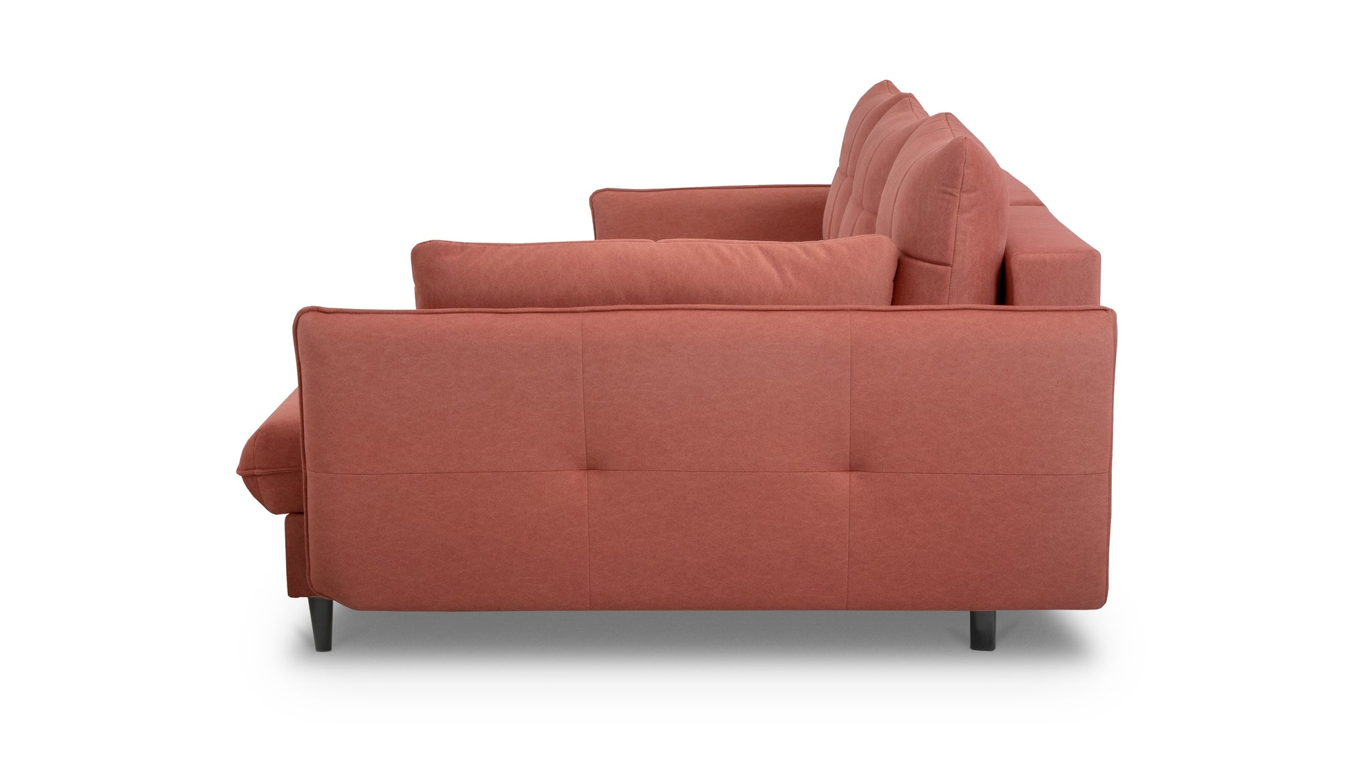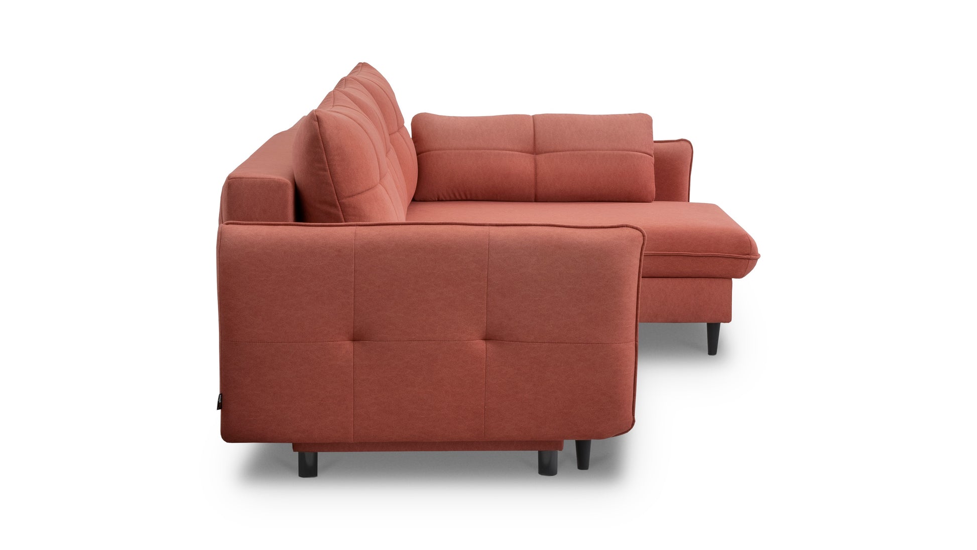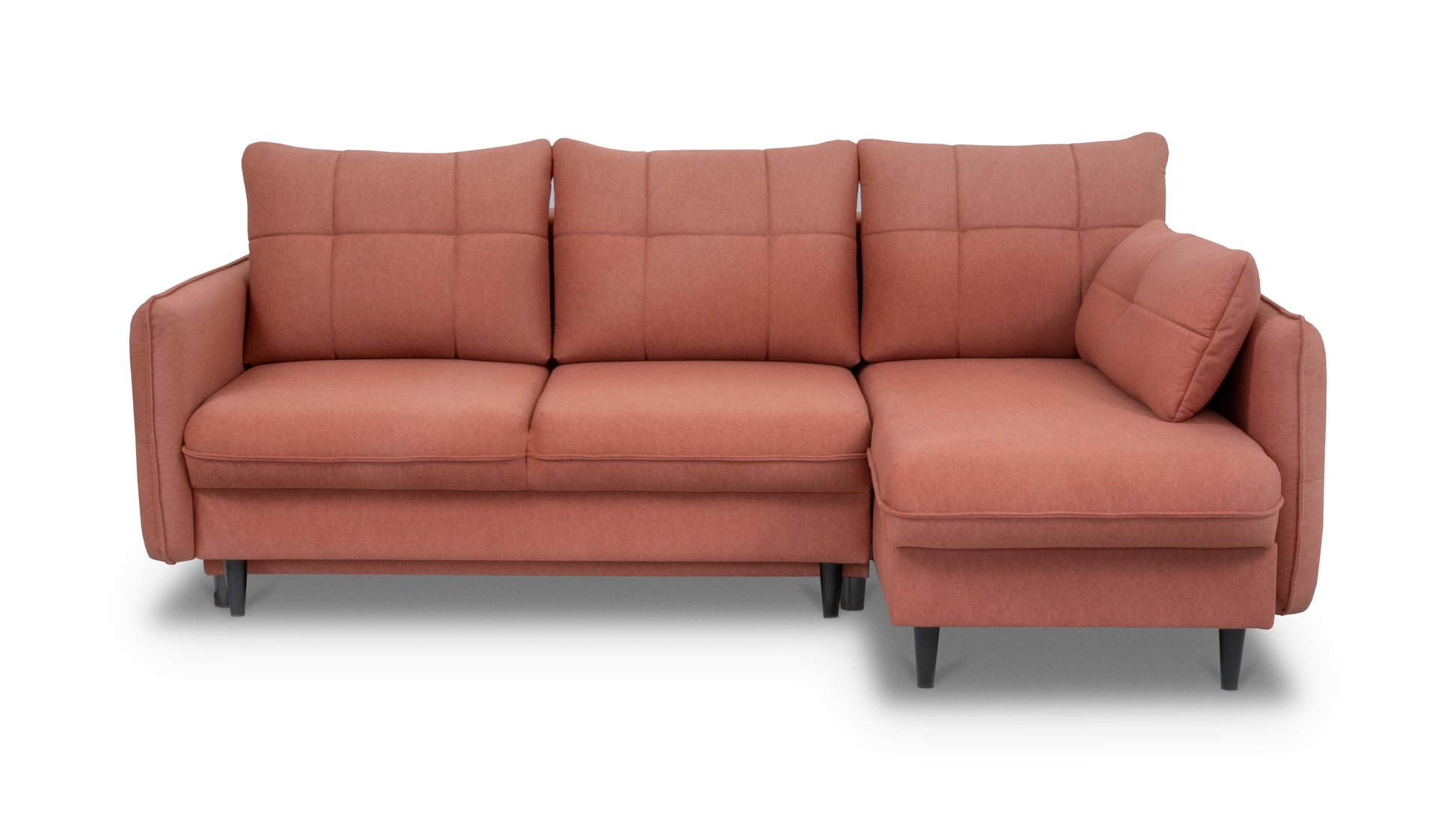 Narożnik ARIEL to elegancki i kompaktowy narożnik o niebanalnej stylistyce. Ciekawym akcentem są krzyżowe przeszycia oparć i pikowane boki, co razem z wysokimi nóżkami dodaje bryle lekkości. Model wyróżnia się szerokością 217 cm, więc może stanowić doskonałą propozycję na zagospodarowanie nawet mniejszego mieszkania, gwarantując jednocześnie nadzwyczajny komfort wypoczynku dzięki wypełnieniu z pianki wysokoelastycznej i sprężyn falistych. Narożnik wyposażono w funkcję spania (mechanizm DL) do łatwego przekształcania w pełnowymiarowe łóżko, a wbudowane miejsce do przechowywania pościeli gwarantuje utrzymanie porządku w salonie.