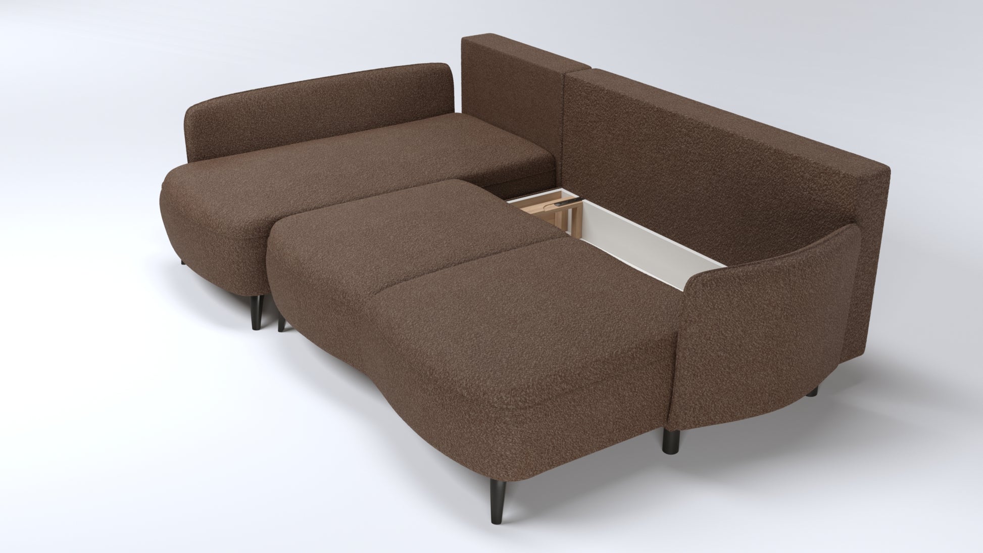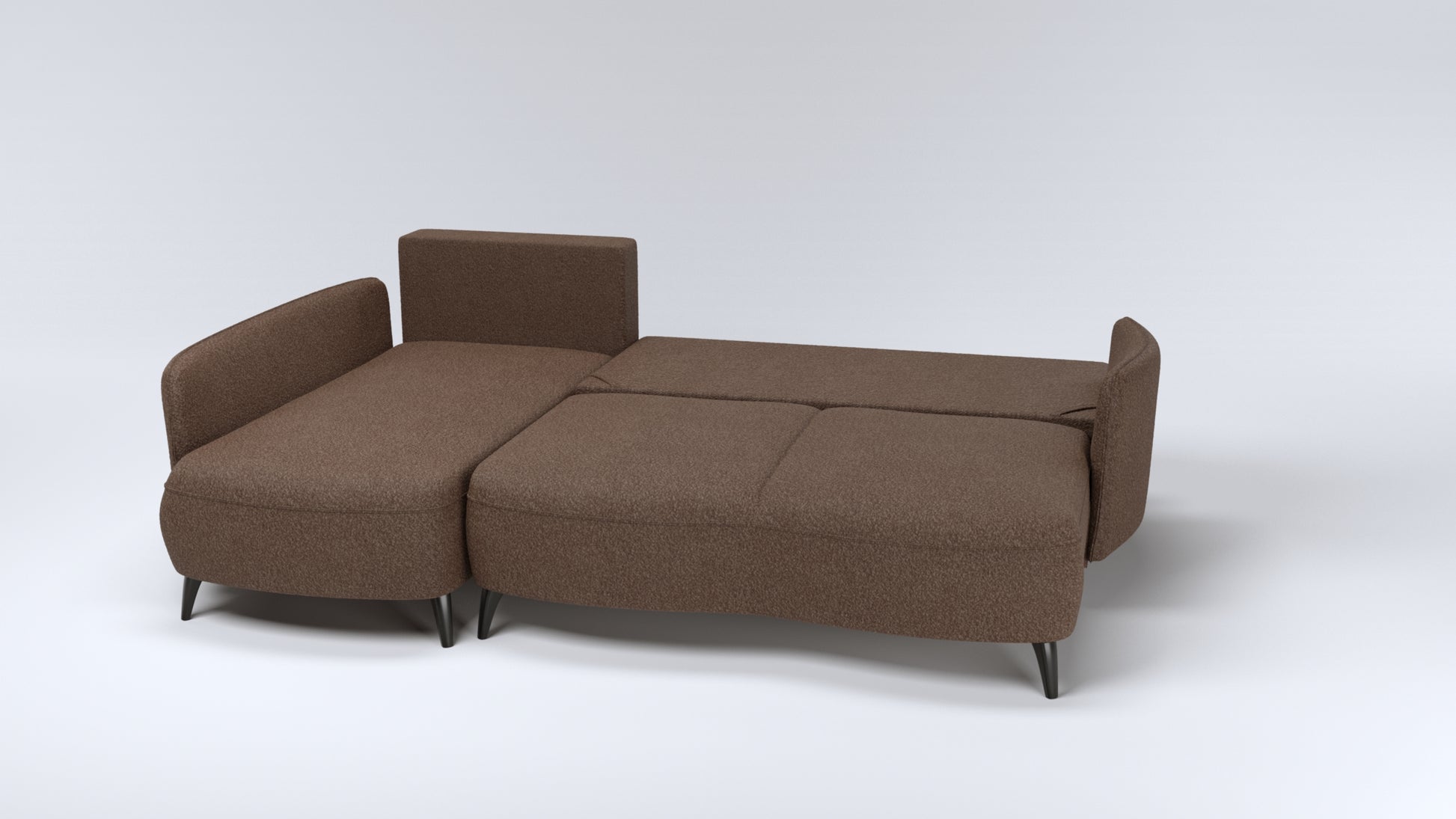 Model ten został wzbogacony o pojemny schowek na pościel, co pozwala na lepszą organizację przestrzeni. Ukryty wewnątrz konstrukcji pojemnik zapewnia łatwy dostęp do dodatkowych tekstyliów, a jednocześnie pomaga zachować porządek w salonie. Prześwit pod meblem wynoszący 12 cm ułatwia korzystanie z robotów sprzątających, co dodatkowo podnosi komfort użytkowania.