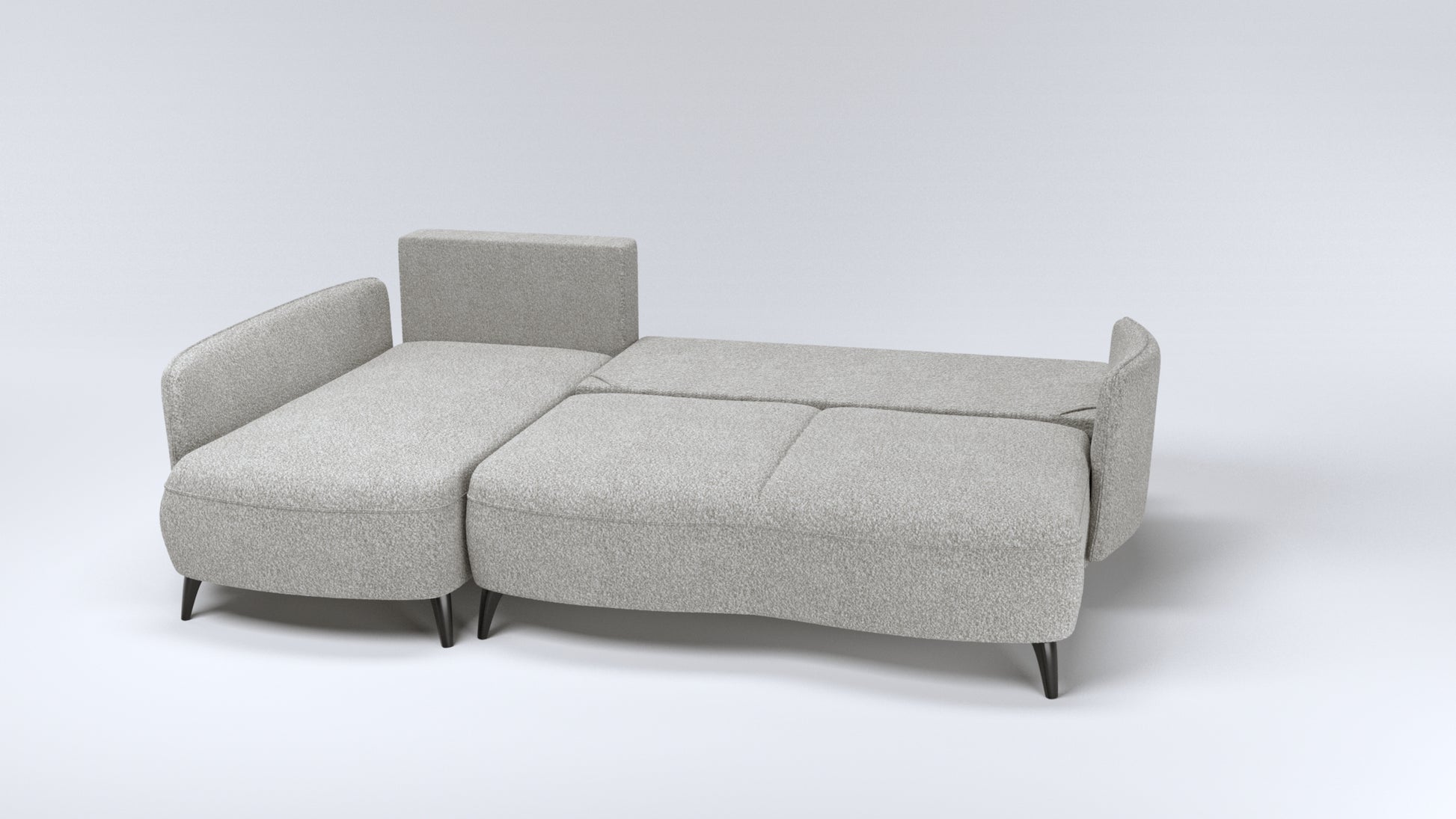 Model ten został wzbogacony o pojemny schowek na pościel, co pozwala na lepszą organizację przestrzeni. Ukryty wewnątrz konstrukcji pojemnik zapewnia łatwy dostęp do dodatkowych tekstyliów, a jednocześnie pomaga zachować porządek w salonie. Prześwit pod meblem wynoszący 12 cm ułatwia korzystanie z robotów sprzątających, co dodatkowo podnosi komfort użytkowania.