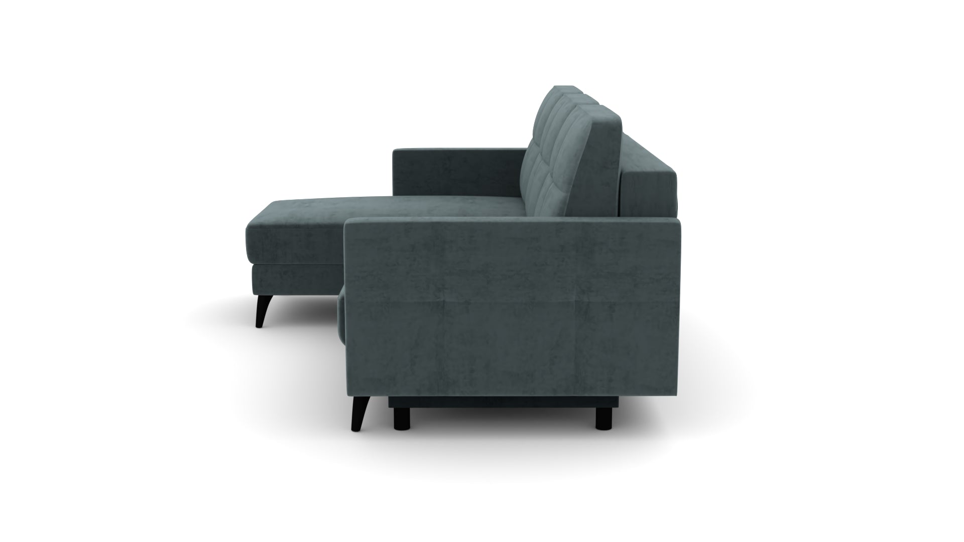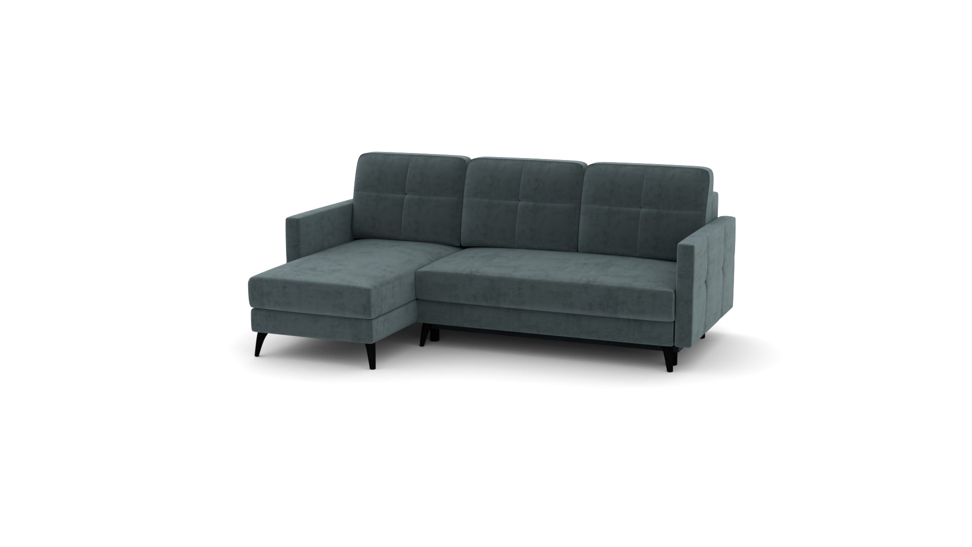 Narożnik Cooper z funkcją spania to gustowny mebel, który oferuje podwyższony komfort i funkcjonalność. Jego prosta, geometryczna bryła została przełamana delikatnymi, pikowanymi przeszyciami. Wysokie czarne nóżki nadają mu lekkości i elegancji. Narożnik posiada funkcję spania rozkładaną przy pomocy automatu DL. Pod wygodnym siedziskiem ze sprężyną falistą i pianką znajduje się obszerna skrzynia na pościel. Tapicerowany tył umożliwia swobodne umiejscowienie narożnika w pomieszczeniu, dodając mu charakteru. Doskonale pasuje do eleganckich, nowoczesnych wnętrz. Wymiary narożnika to 215 cm szerokości, 88 cm wysokości, 145 cm głębokości a jego powierzchnia spania to 125 x 195 cm.