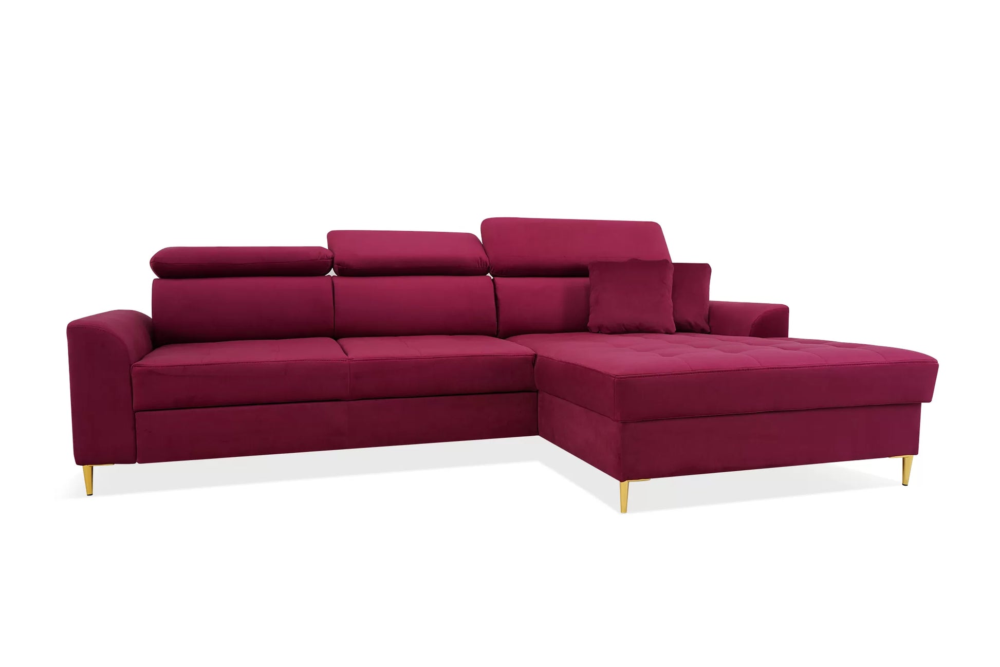 Nogi narożnika Fresa są metalowe i mają piękny złoty kolor. Złote detale na nogach dodają meblowi elegancji i luksusowego wykończenia. Metalowe nogi są również solidne i stabilne, zapewniając trwałość mebla.