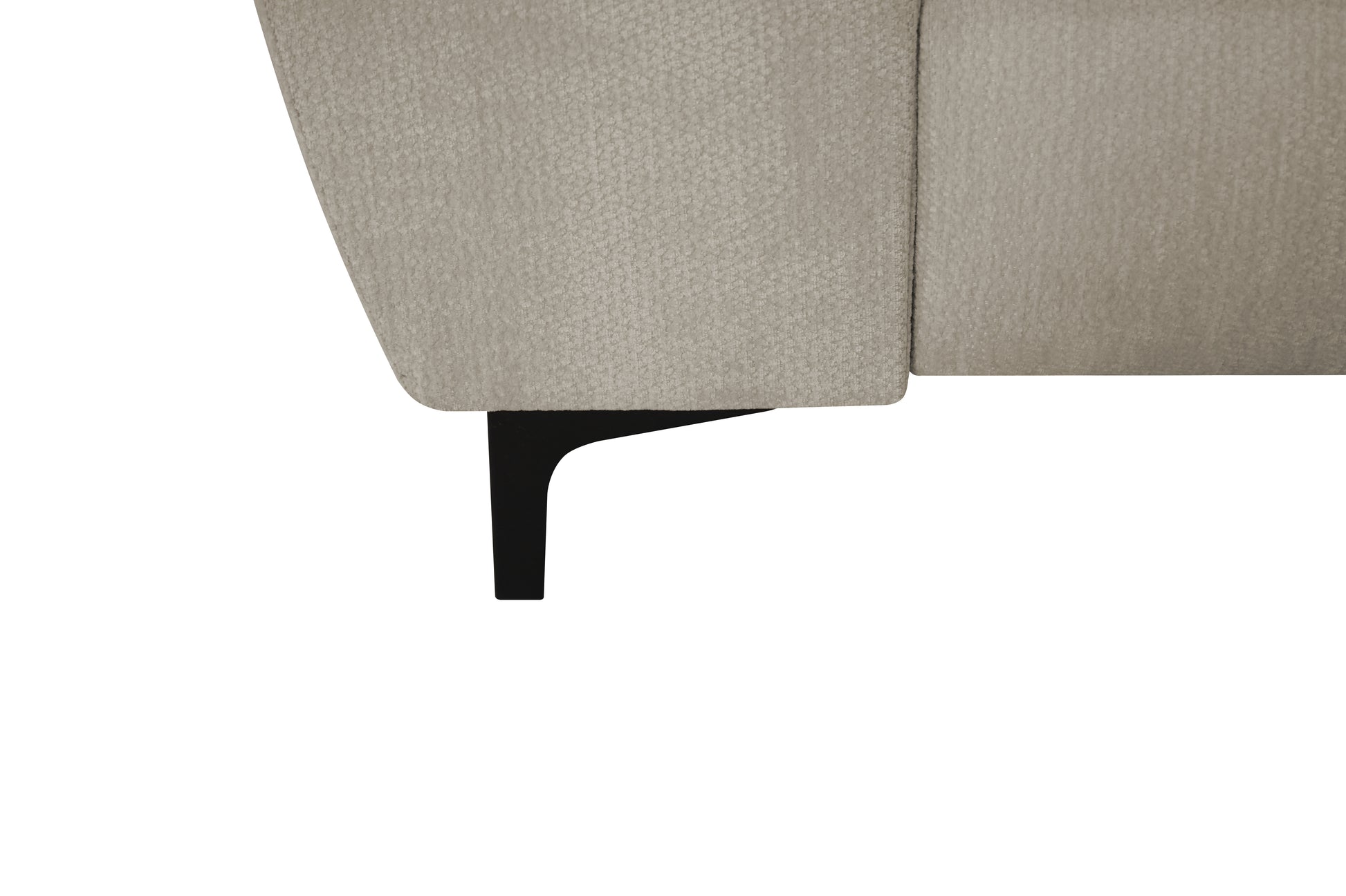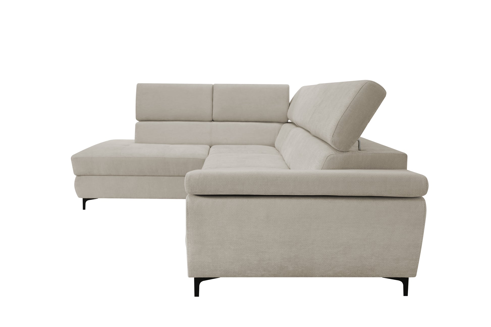 Nóżki narożnika są wykonane z czarnego metalu, co dodaje mu stabilności i nowoczesnego wyglądu. Metalowe nóżki są solidne i trwałe, zapewniając niezawodne wsparcie dla narożnika.