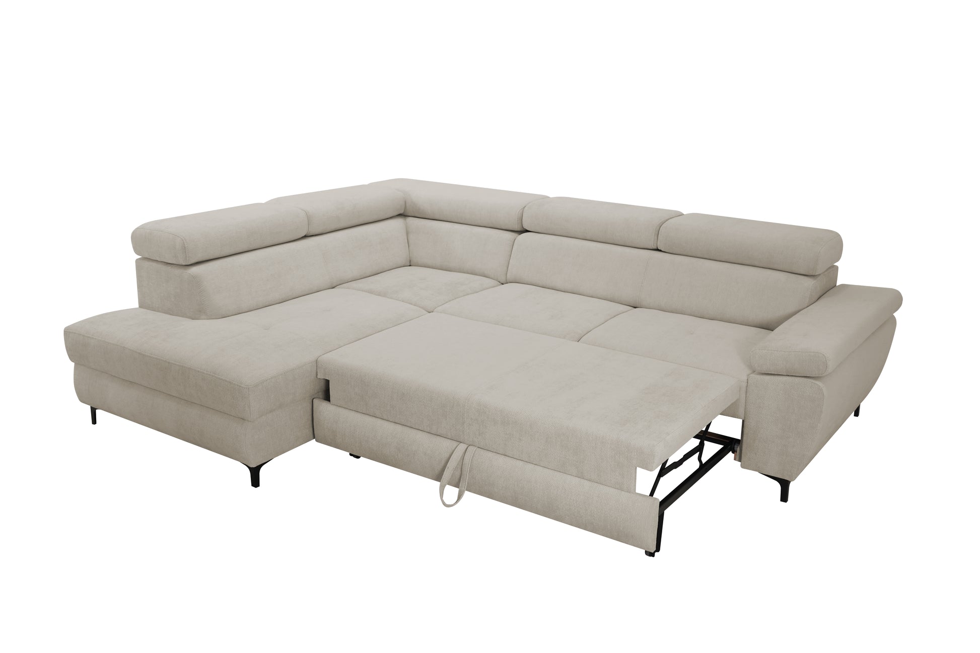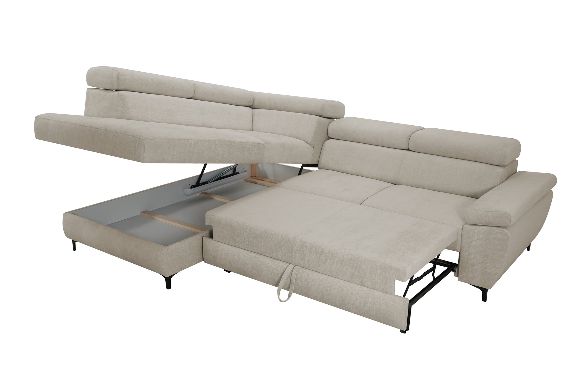 Narożnik Shepard beżowy uniwersalny rozkładany pojemnik na pościel
