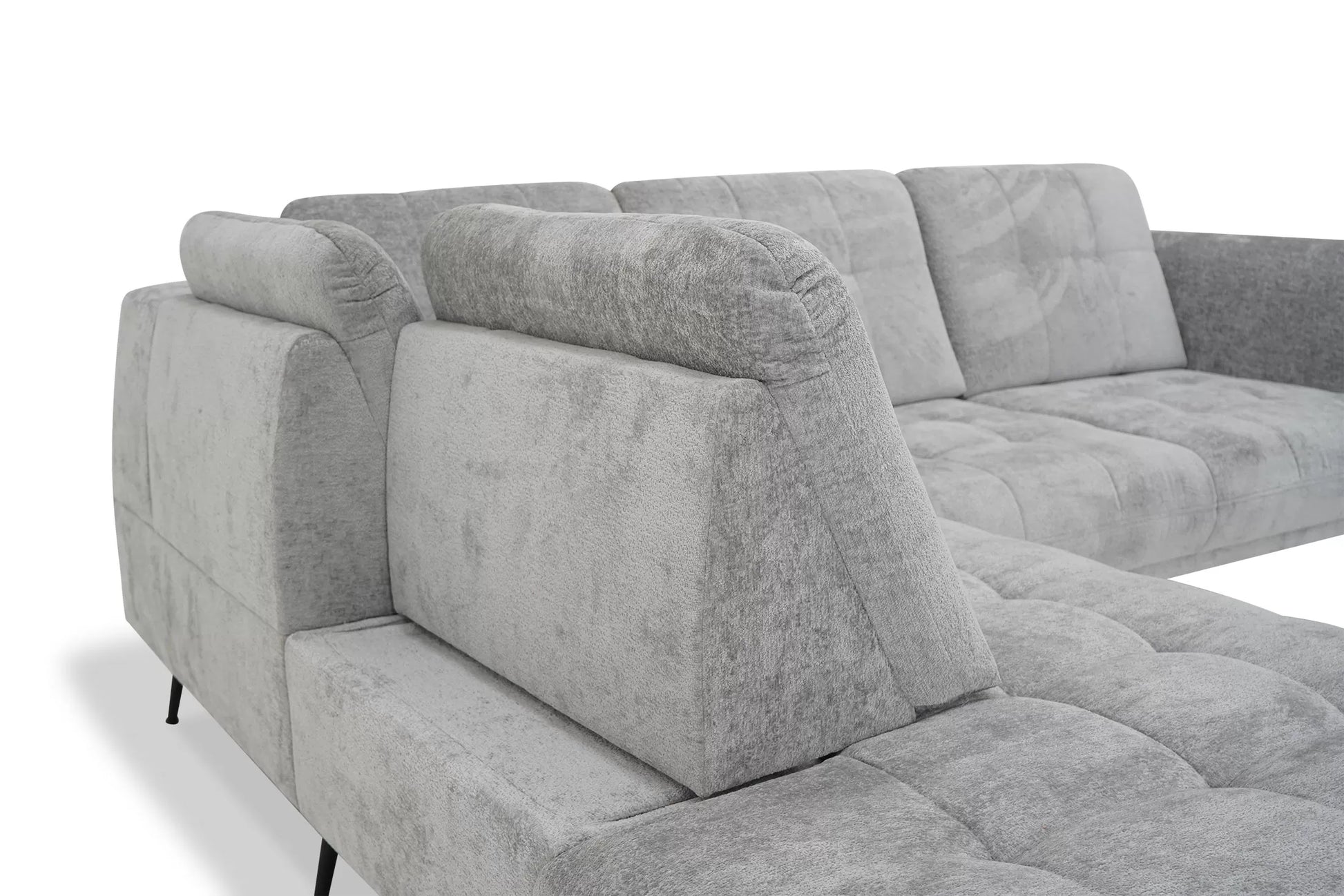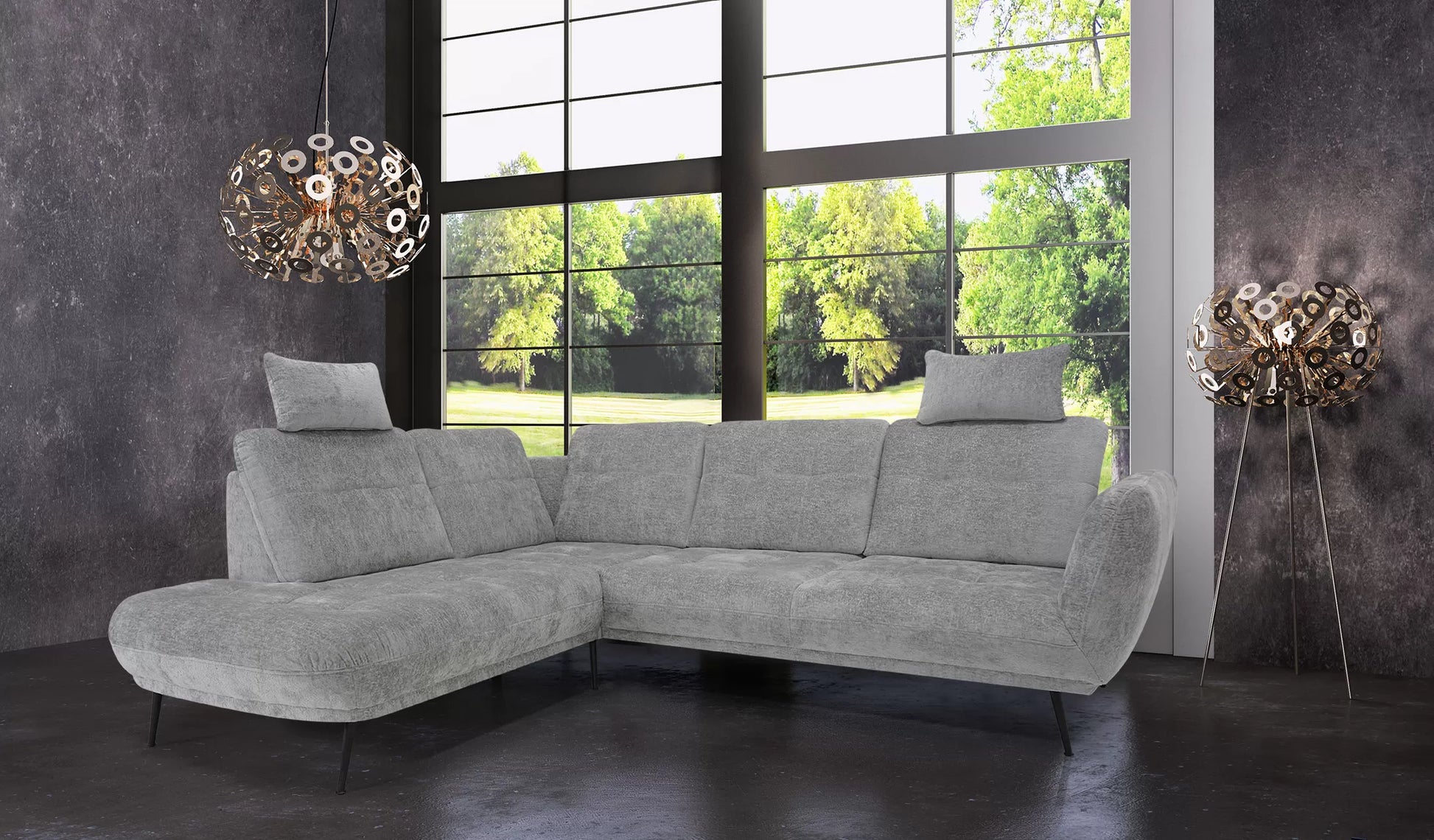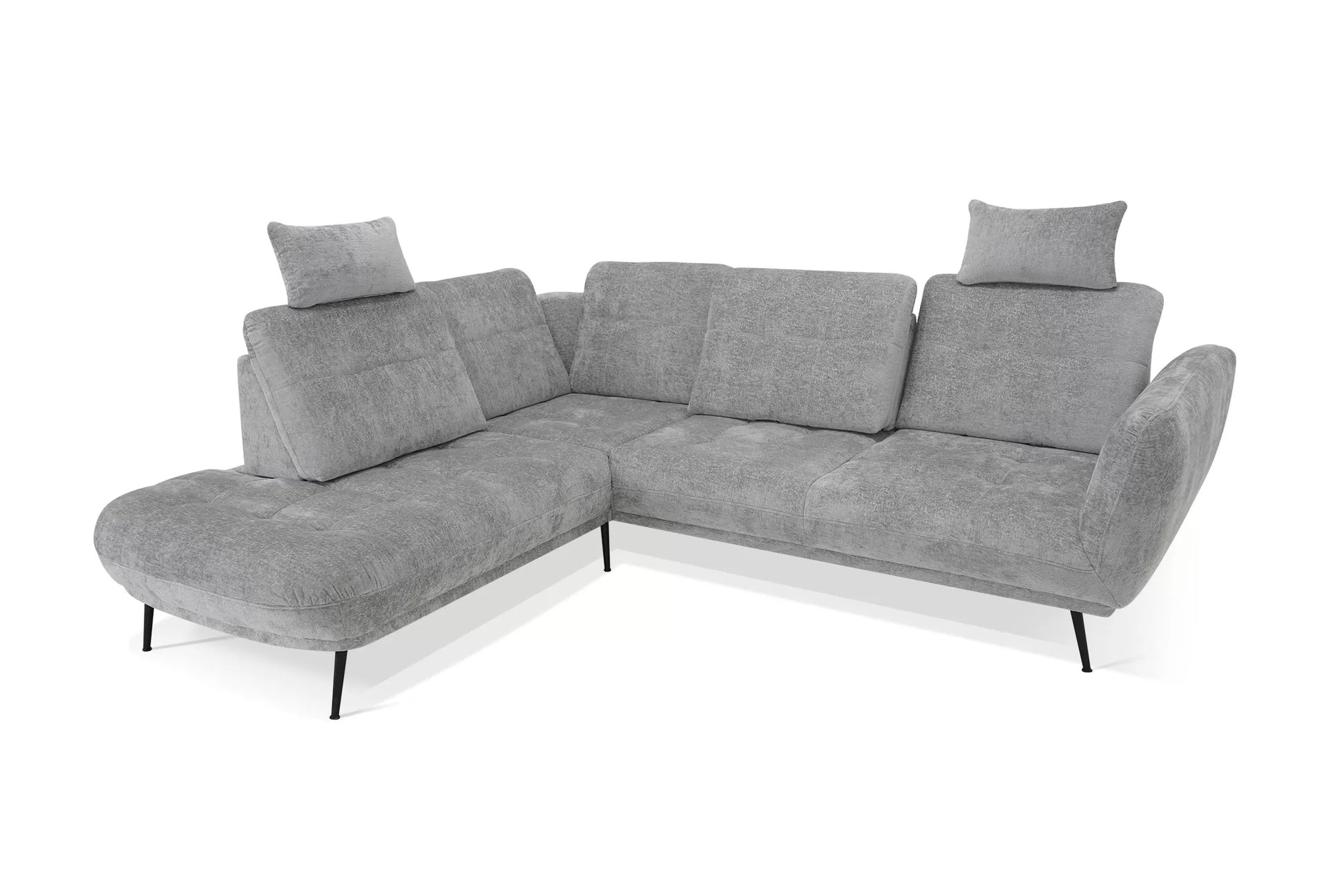 Piękny i elegancki narożnik Grise w kształcie litery L jest wykonany z miękkiej tkaniny typu szenil - Symphony, dostępną w pięciu modnych kolorach.