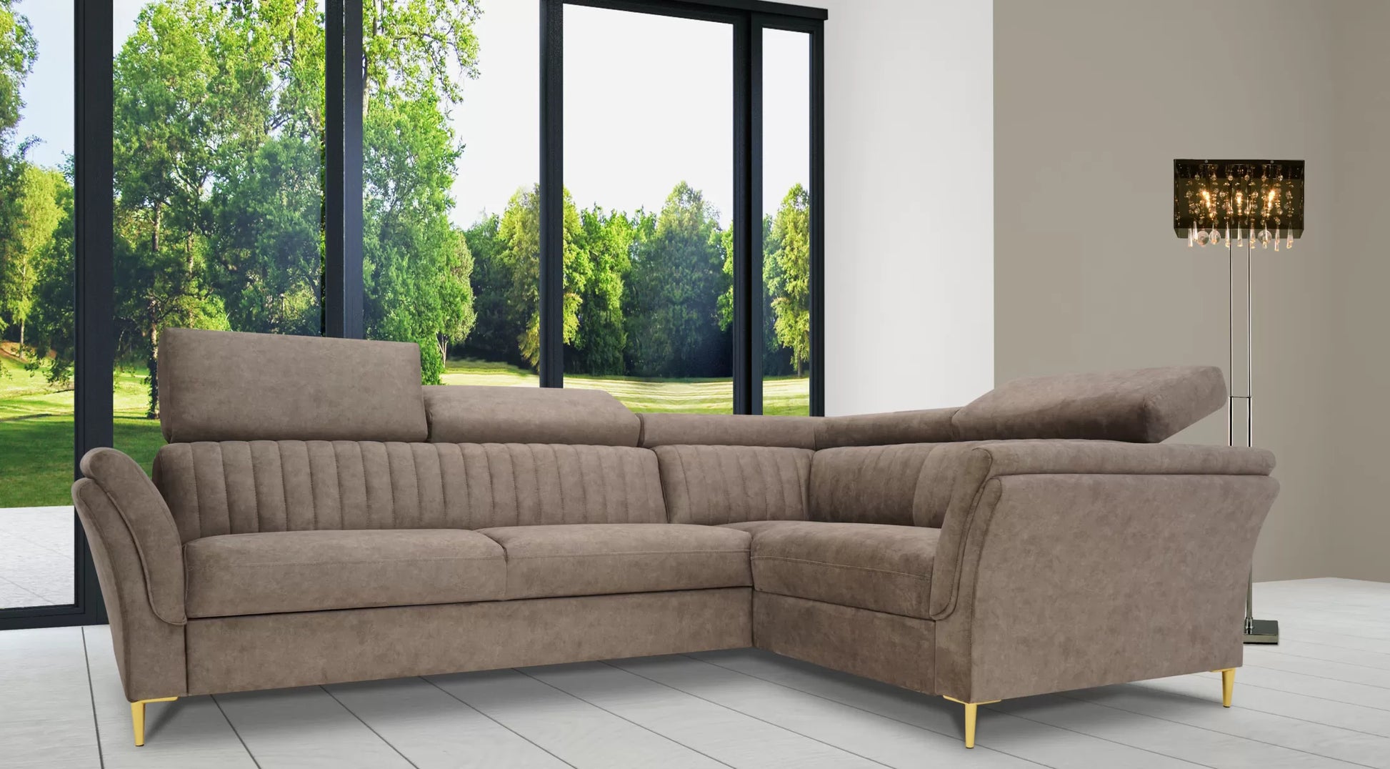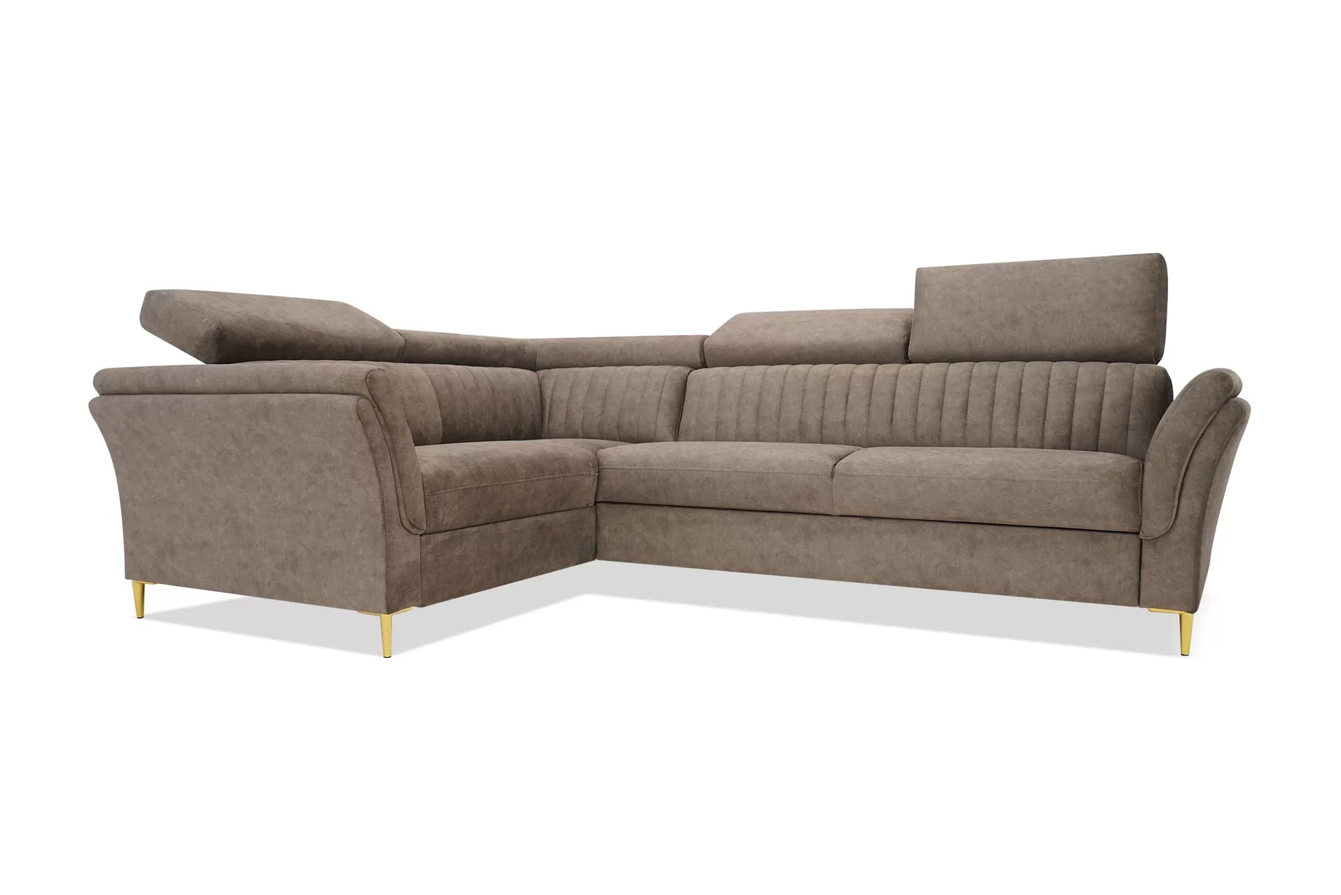 Narożnik Lecto posiada metalowe, złote nóżki, które dodają mu nowoczesnego i luksusowego charakteru. Te metalowe nóżki są solidne, stabilne i trwałe, jednocześnie wprowadzając element wyrafinowanego designu.
