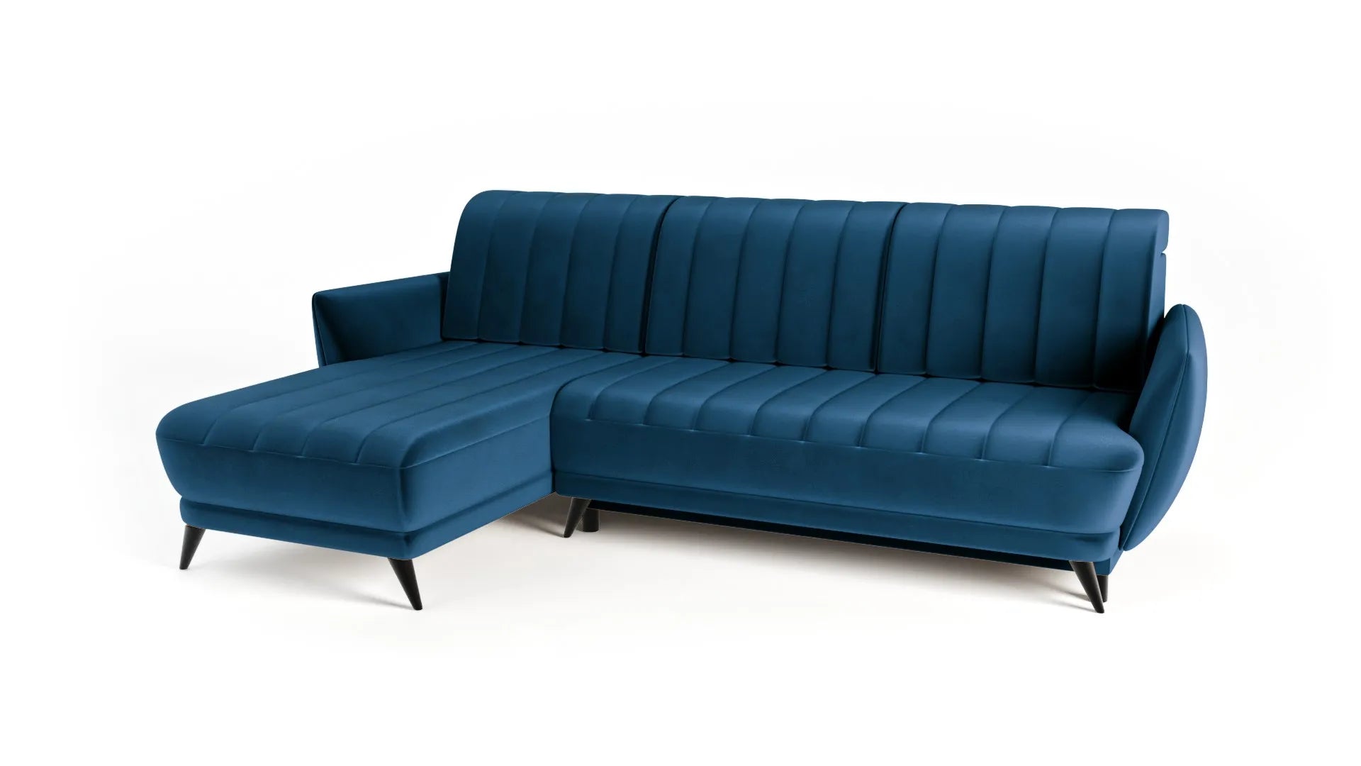 Narożnik Roy to elegancki mebel, który łączy styl i wygodę. Wykonany jest z tkaniny o nazwie bluvel, która jest rodzajem miękkiego velvetu, nadając mu miękkość i delikatność w dotyku. Pikowania pionowe na oparciu i siedzisku dodają narożnikowi Roy wyjątkowego charakteru.