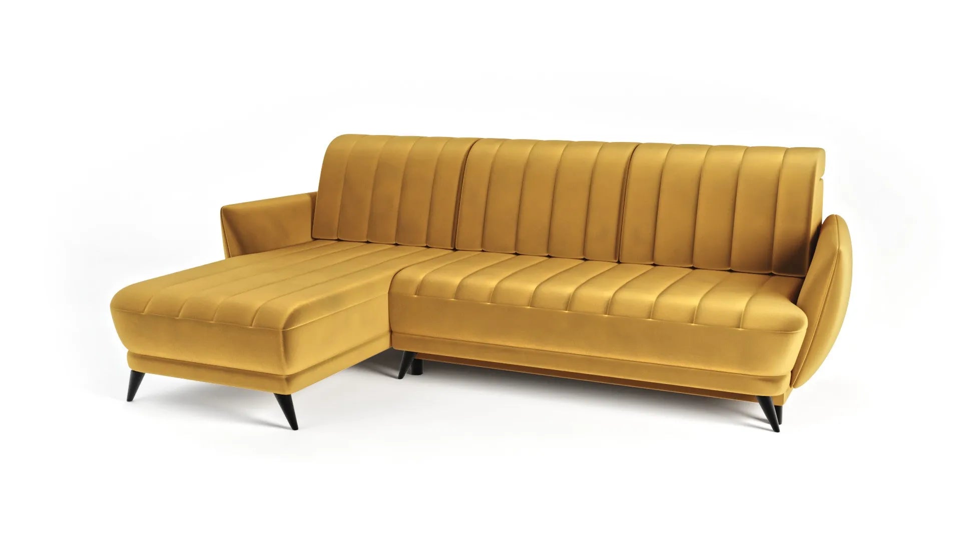 Narożnik Roy to elegancki mebel, który łączy styl i wygodę. Wykonany jest z tkaniny o nazwie bluvel, która jest rodzajem miękkiego velvetu, nadając mu miękkość i delikatność w dotyku. Pikowania pionowe na oparciu i siedzisku dodają narożnikowi Roy wyjątkowego charakteru.