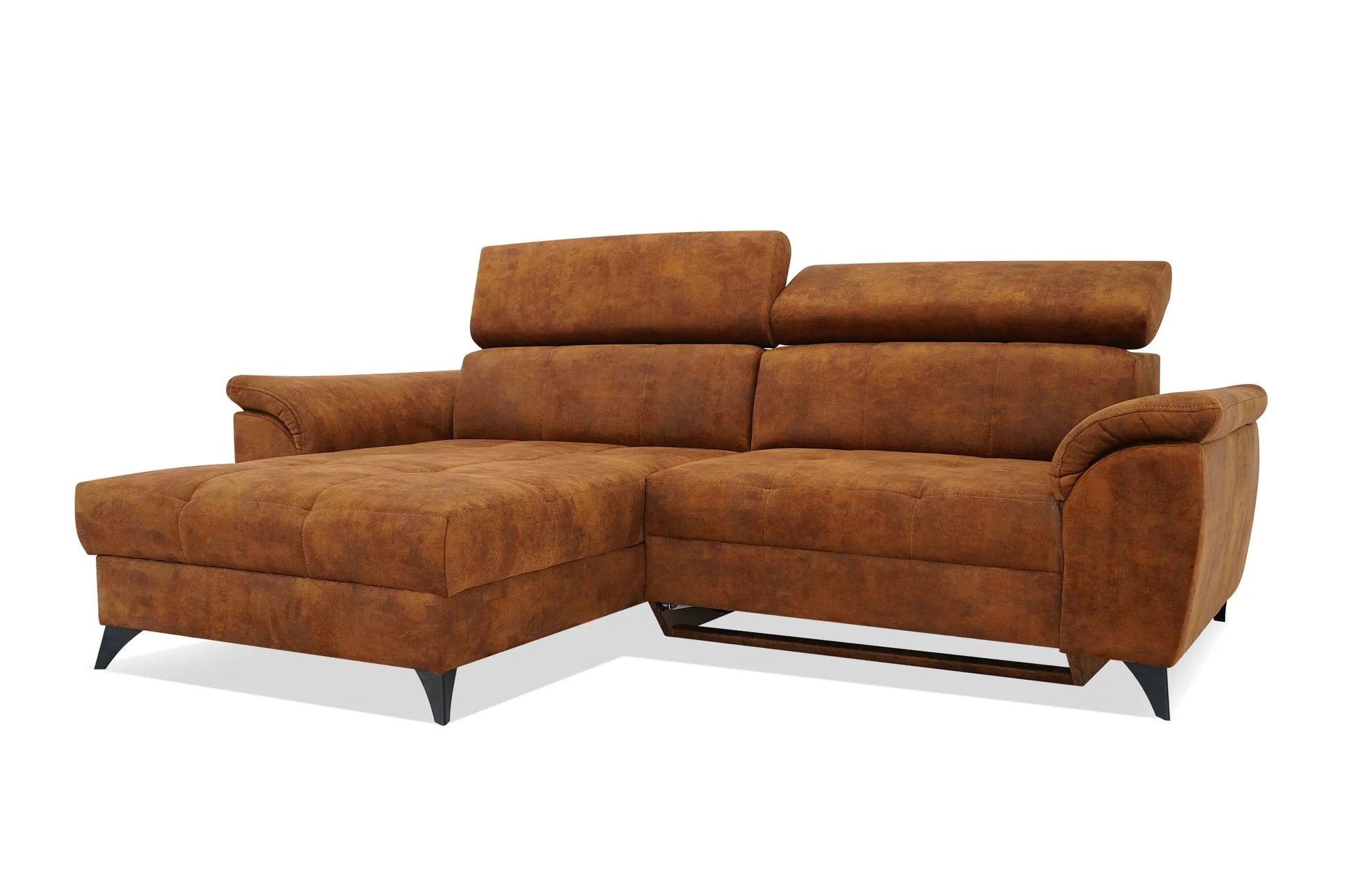 Narożnik ten wyróżnia się kolorystyką w odcieniu rudy, co nadaje mu elegancji i ciepła. Tkanina, która pokrywa narożnik, jest w typie weluru, co sprawia, że jest niezwykle miękka i przyjemna w dotyku. Welurowa powierzchnia nadaje mu ekskluzywny wygląd i dodaje przytulności do każdego wnętrza.