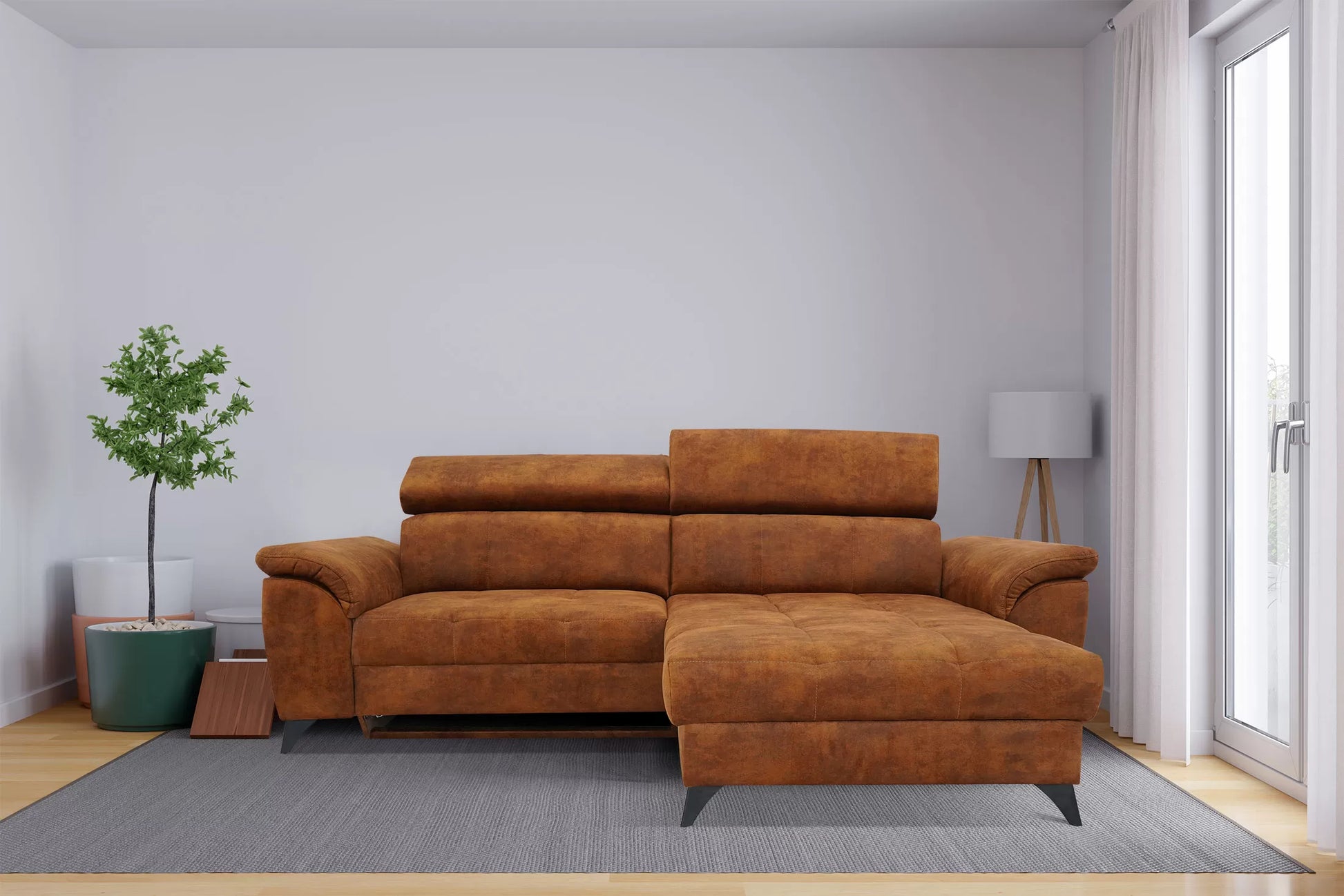 Narożnik Rusto został także wyposażony w regulowane zagłówki, które umożliwiają dostosowanie podparcia głowy do indywidualnych preferencji. Dzięki temu można znaleźć idealną pozycję podczas relaksu czy oglądania ulubionego filmu.