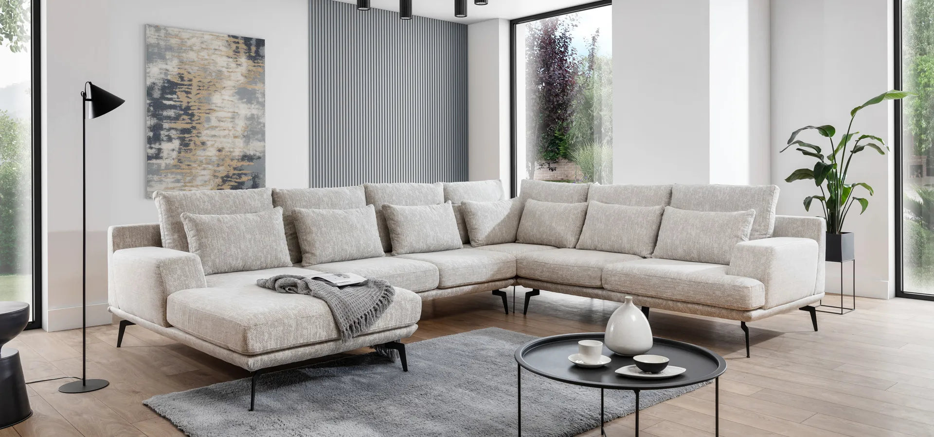 Narożnik Sorano nowoczesny beż metalowe nogi