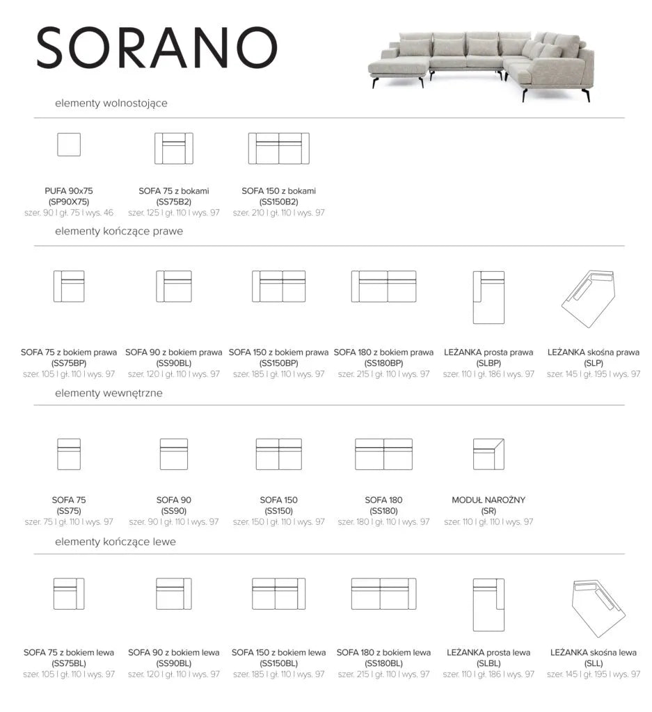 Kolekcja Sorano składa się z modułów - zachęcamy do kontaktu w celu wyceny narożnika z wybranych przez Ciebie elementów!