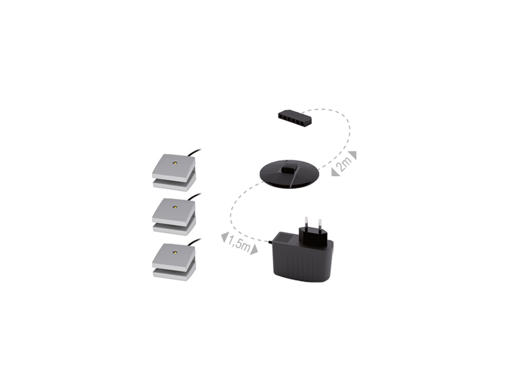 Trzy niezależne moduły LED umożliwiają montaż w kilku punktach, co pozwala równomiernie doświetlić półki, witryny, wnętrza szaf czy przestrzeń ekspozycyjną. Rozdzielacz pozwala zasilić wszystkie oprawy z jednego źródła, dzięki czemu instalacja jest uporządkowana i estetyczna.