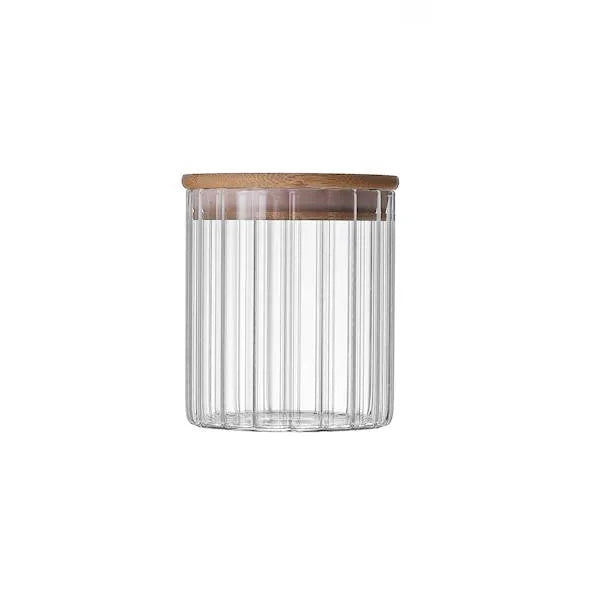 Pojemnik z przykrywką La Bande o wysokości 10 cm to doskonały wybór do przechowywania żywności w nowoczesnej kuchni. Wykonany z wysokiej jakości szkła borosilikatowego, które cechuje się wyjątkową trwałością i odpornością na zmiany temperatury, idealnie nadaje się do przechowywania produktów takich jak makarony, kawa czy herbata. Jego ryflowana forma nadaje mu elegancki, minimalistyczny wygląd, który świetnie wpisuje się w nowoczesne wnętrza. Bambusowa pokrywka zapewnia szczelność, chroniąc żywność przed wilgocią i utrzymując jej świeżość na dłużej. Pojemnik La Bande dostępny jest również w innych wysokościach: 12 cm, 15 cm i 20 cm, co pozwala na idealne dopasowanie do indywidualnych potrzeb przechowywania.
