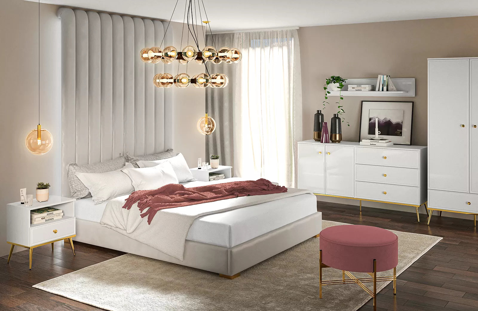 Kombinacja białego połysku i złotych elementów tworzy efektowne i stylowe połączenie, które doskonale pasuje do różnych aranżacji wnętrz. Półka Goldin jest nie tylko praktycznym miejscem do przechowywania, ale także atrakcyjnym elementem dekoracyjnym, który dodaje uroku i wyrafinowania do Twojego wnętrza.