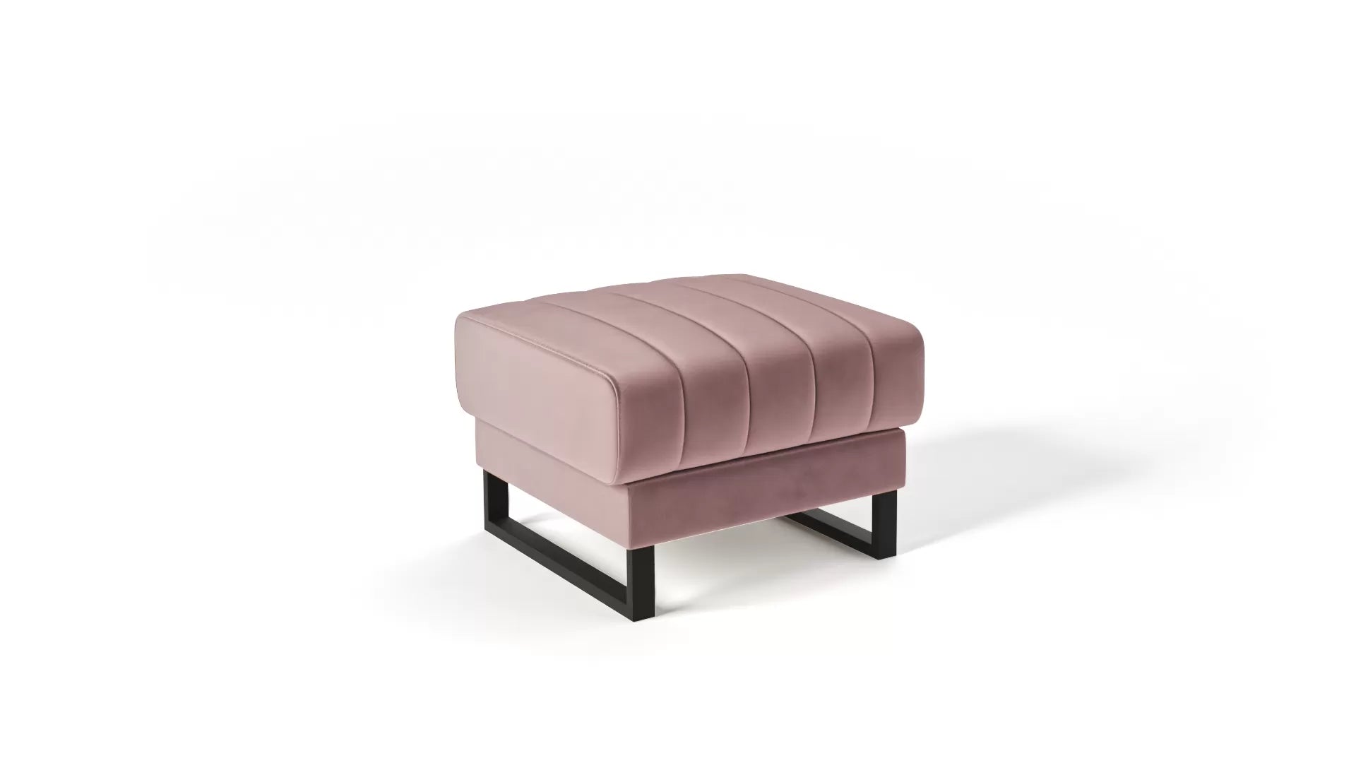 Stelaż pufy wykonany jest z solidnego, czarnego metalu, co nadaje meblowi industrialny i nowoczesny charakter. To minimalistyczne, ale zarazem efektowne podparcie zapewnia stabilność i trwałość pufy.