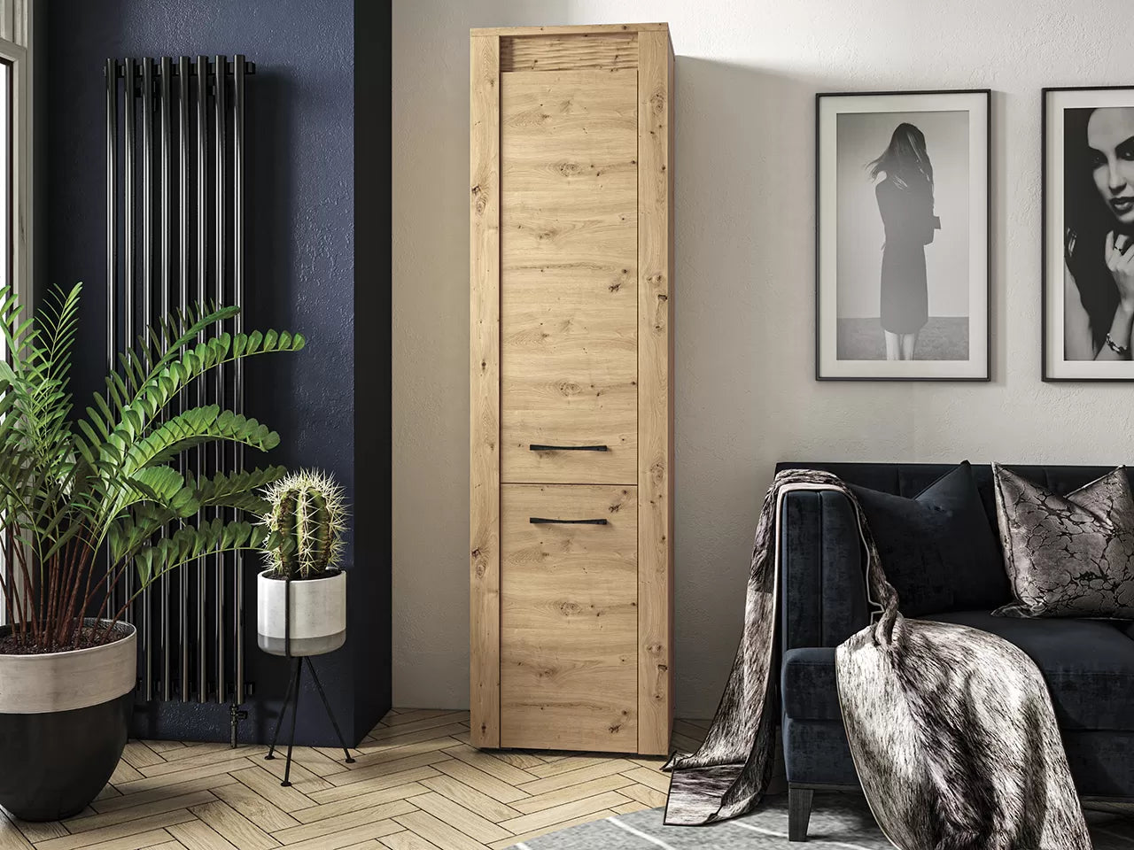 Regał Artis to jednodrzwiowy mebel, który można zamknąć, zapewniając prywatność i ochronę przechowywanych przedmiotów.