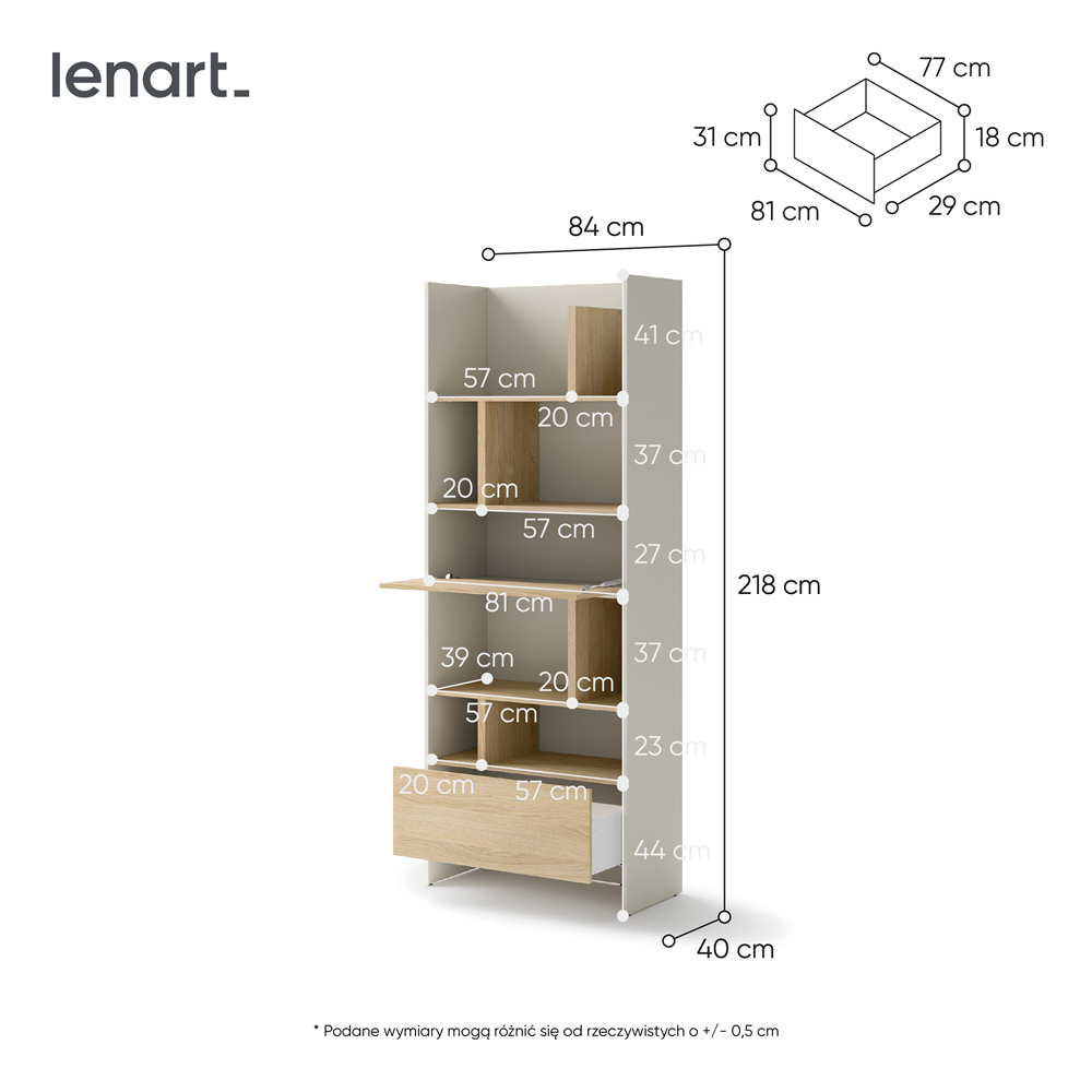 BED CONCEPT BC-22 - regał 84x218 - kaszmir/dąb nagano