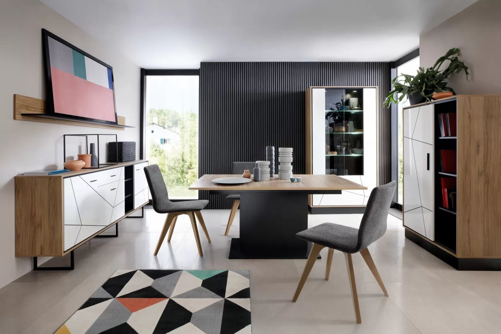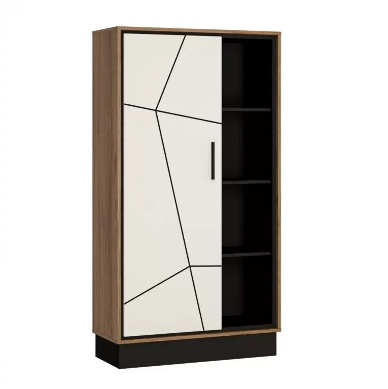 Regał Brolo to mebel składający się z połowy zamkniętych półek i połowy otwartych półek. Jest dostępny w trzech różnych kolorach: dąb catania, czarna perła oraz biały połysk.