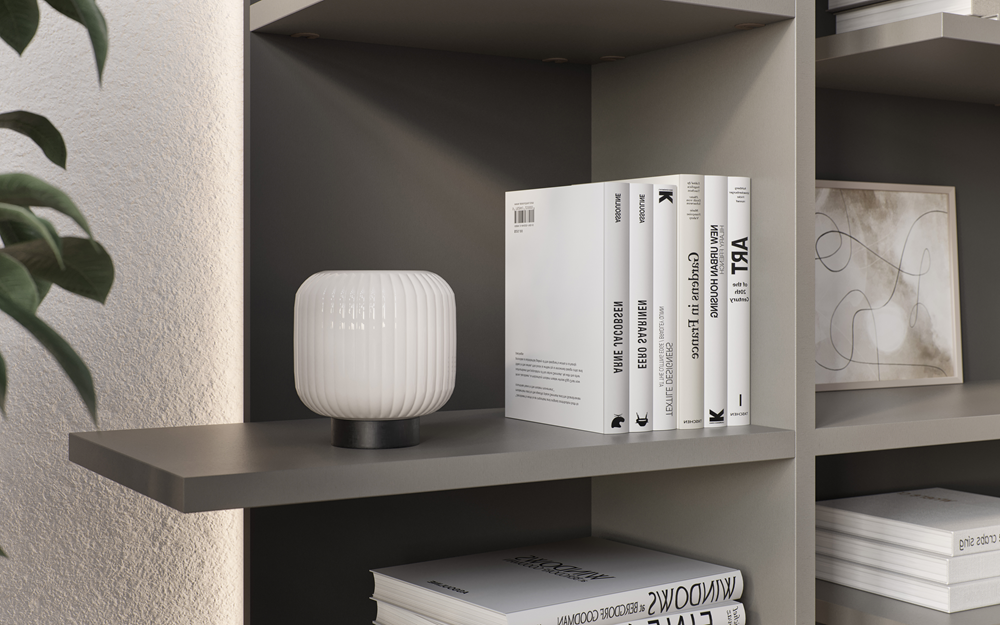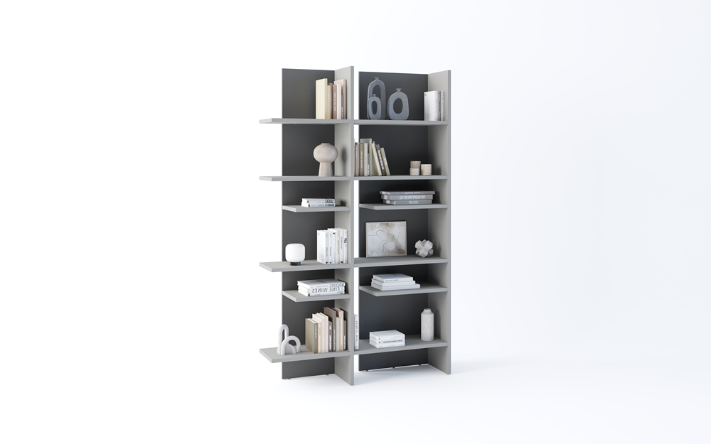 Otwarte półki regału Fitt ułatwiają dostęp do wszystkich potrzebnych przedmiotów, co sprawia, że praca staje się bardziej efektywna i zorganizowana. Dzięki swojej konstrukcji regał ten doskonale zagospodarowuje przestrzeń, nie obciążając wizualnie pomieszczenia, co jest szczególnie cenne w małych domowych biurach.