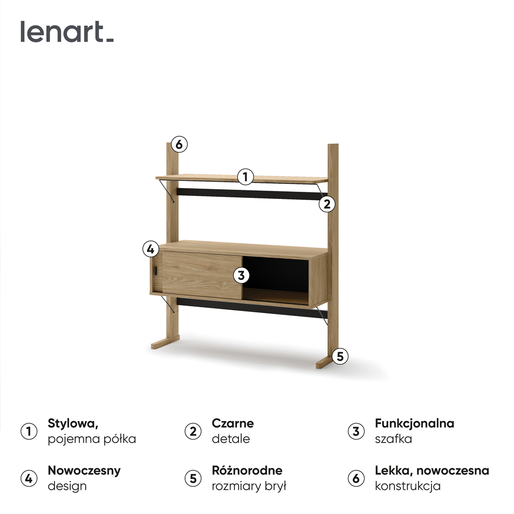 ✅ Kompaktowe wymiary – niski regał zajmuje niewiele miejsca, a jednocześnie zapewnia wystarczająco dużo przestrzeni do przechowywania książek, dekoracji i pamiątek.