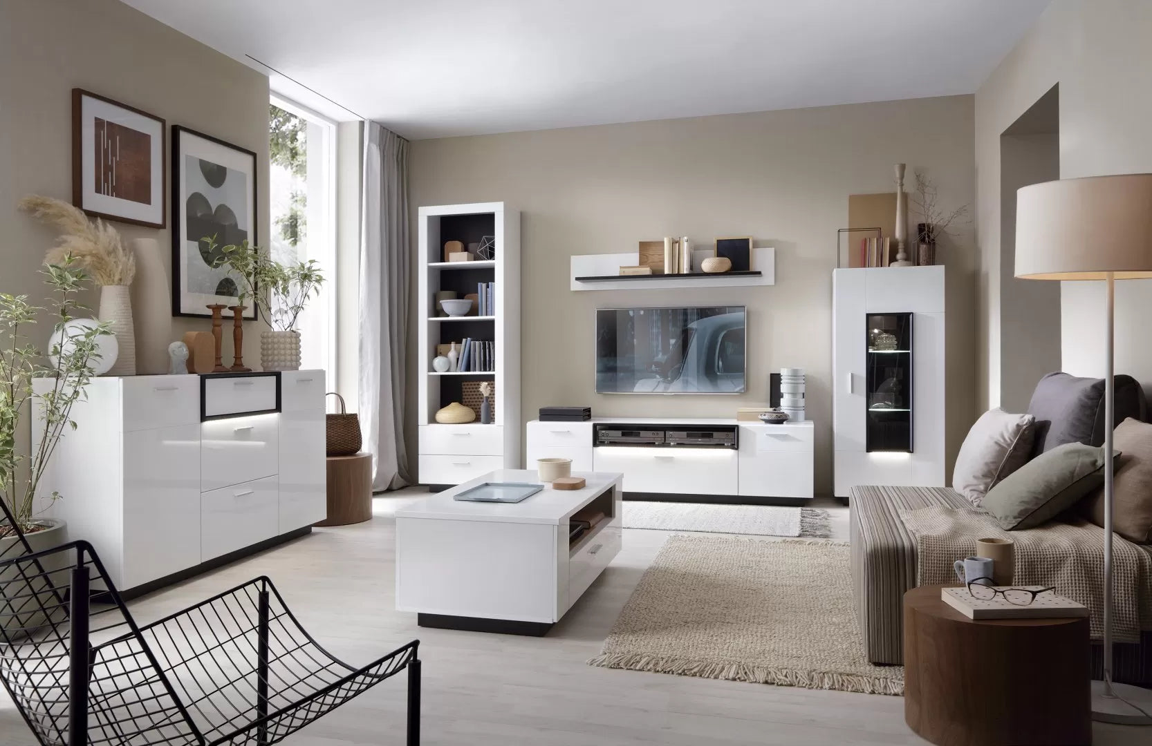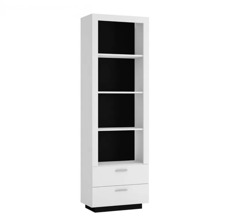 Kolor regału Ravenno to biały alpejski, który nadaje mu świeży i jasny wygląd. Tył regału jest wykonany z czarnego materiału, co kontrastuje z białym korpusu i dodaje mu nowoczesnego charakteru. Fronty szuflad zaś są wykonane z białej płyty MDF w połysku, co nadaje regałowi elegancji i subtelności.