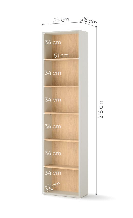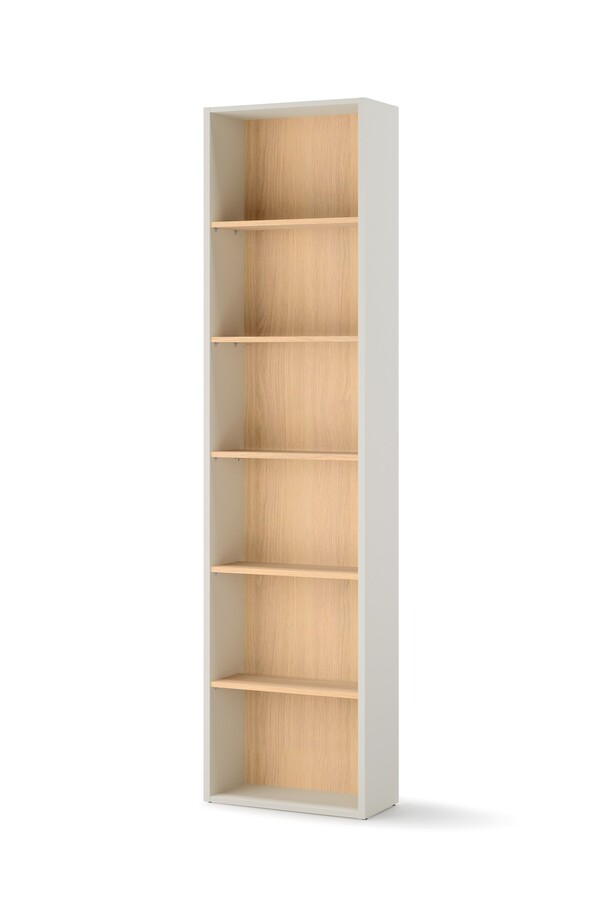Regał wyposażony jest w kilka pojemnych półek, które pomieszczą książki, dekoracje, akcesoria i wiele innych drobiazgów. Otwarte przestrzenie pozwalają na łatwy dostęp do zawartości i dają możliwość indywidualnej aranżacji – od minimalistycznych ustawień po bardziej kreatywne kompozycje.