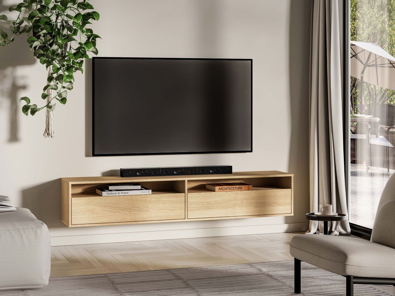 Wisząca szafka RTV z kolekcji Reynos to propozycja dla osób, które cenią minimalistyczny design i praktyczne rozwiązania w salonie. Dzięki podwieszonej konstrukcji mebel optycznie odciąża przestrzeń, nadając wnętrzu poczucie lekkości i nowoczesnego charakteru.