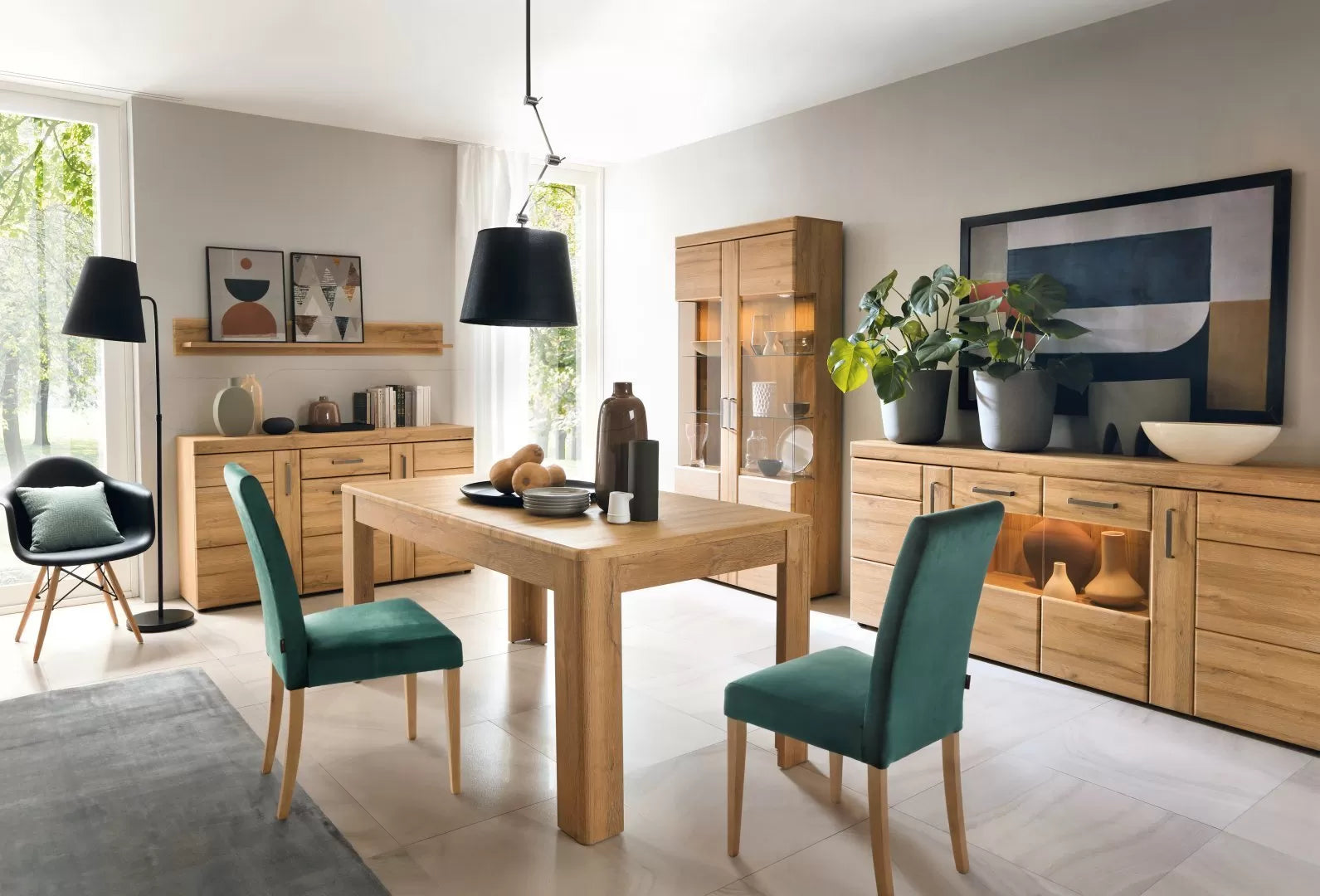 Kolor dąb grandson nadaje stołowi Cortina elegancki i naturalny wygląd. Ten ciepły odcień brązu pasuje do różnych stylów wnętrzarskich i wprowadza przytulność do przestrzeni jadalnianej.