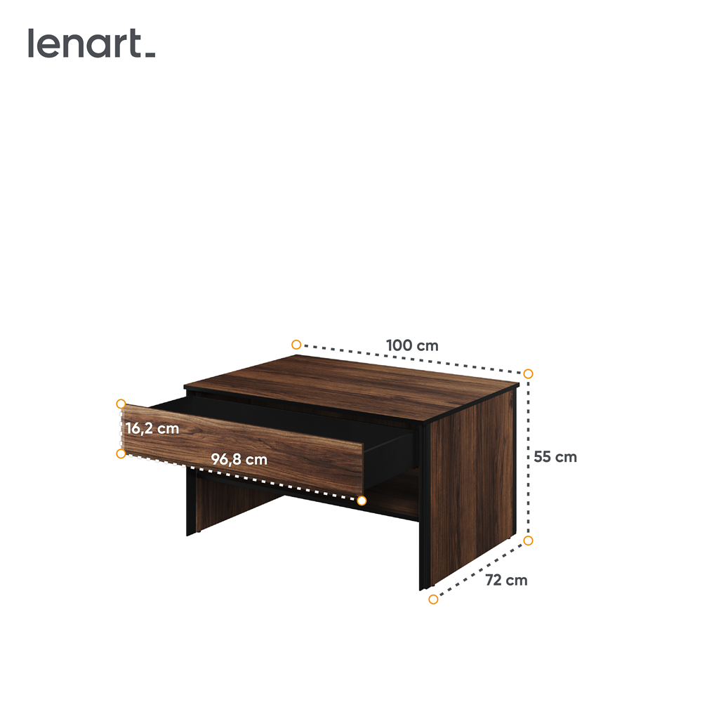 Odcień dębu catania nadaje stolikowi ciepły, naturalny wygląd, który dodaje wnętrzu charakteru. To uniwersalny kolor, który ładnie współgra z różnymi stylami aranżacyjnymi.
