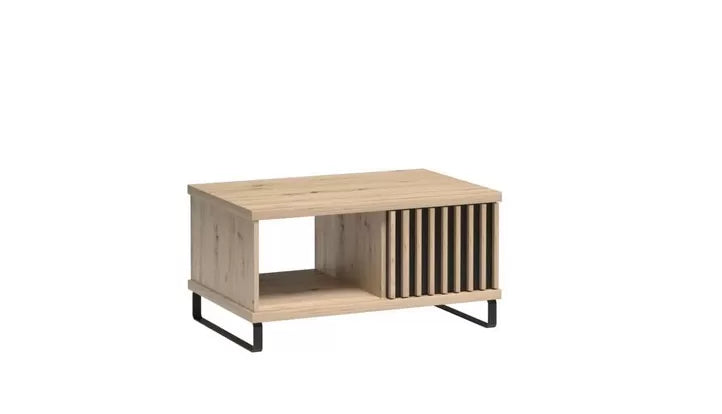 Ława posiada dwie półki, które oferują dodatkową powierzchnię do przechowywania różnych przedmiotów. Można na nich umieścić książki, magazyny, dekoracje czy inne potrzebne rzeczy, co pozwala utrzymać porządek w salonie lub na tarasie. Dodatkowo, jedna szuflada z lamelami w postaci listew na czarnym tle stanowi eleganckie zdobienie mebla i umożliwia przechowywanie mniejszych przedmiotów w dyskretny sposób.