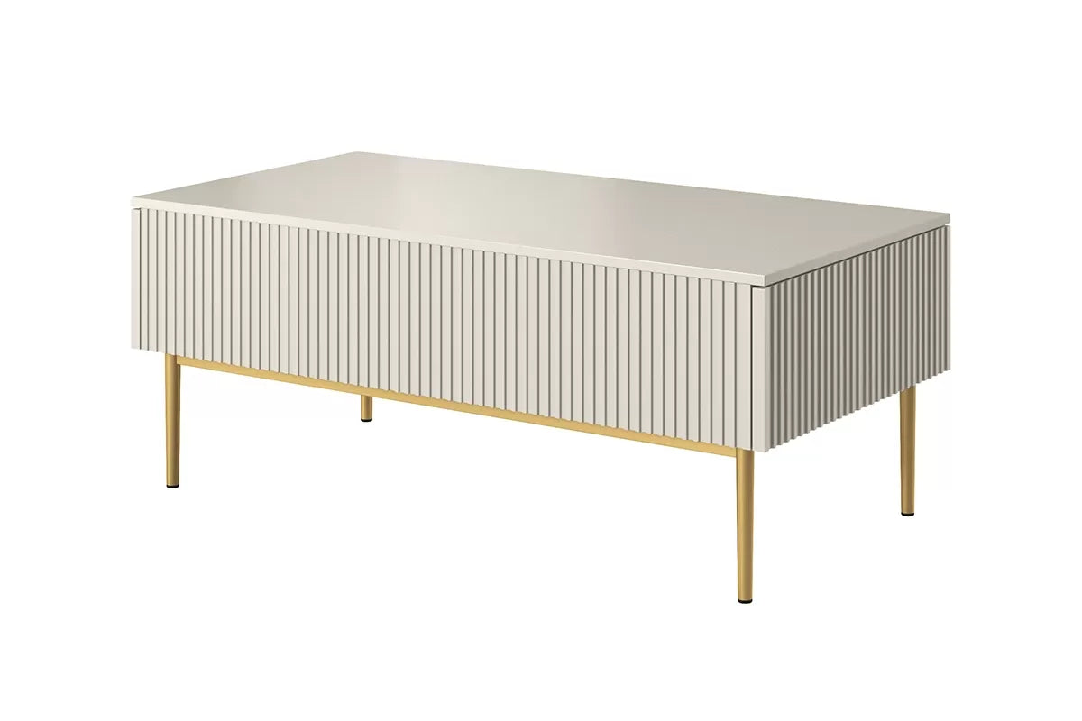 Stolik kawowy Nicole wyposażony jest w dwie szuflady, które zamykają się cicho i delikatnie dzięki zastosowaniu mechanizmu domyku. To praktyczne rozwiązanie, które pozwala na przechowywanie różnych drobiazgów i utrzymanie porządku w przestrzeni.
