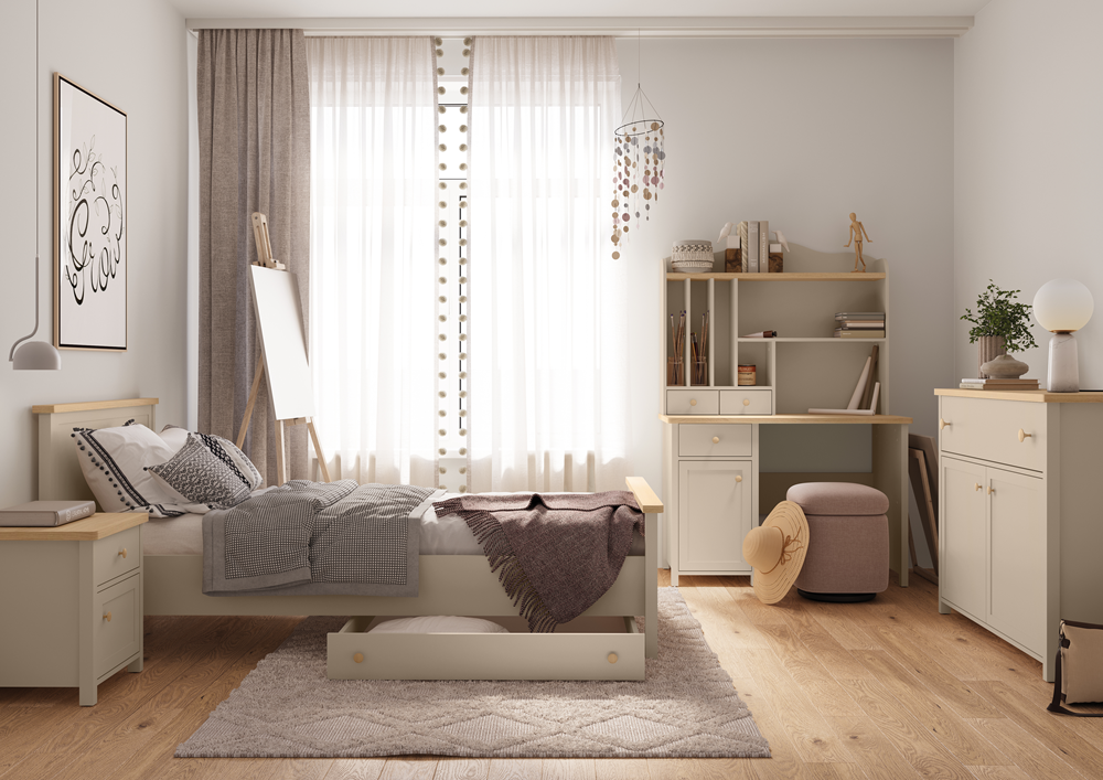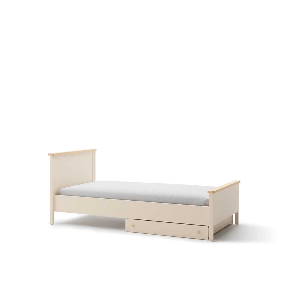 Pojemna szuflada na kółkach do łóżka STORY przyda się jako dodatkowe miejsce do przechowywania pościeli, tekstyliów lub innych rzeczy. Pod łóżkiem zmieści się 1 lub 2 szuflady. Mebel wykonano z wytrzymałej płyty laminowanej wykończonej trwałym obrzeżem ABS. Uchwyty z tworzywa.