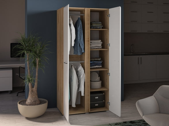 Wnętrze wyposażone w co najmniej pięć funkcjonalnych półek pozwala na wygodne uporządkowanie odzieży, tekstyliów, dokumentów czy domowych akcesoriów. Dzięki logicznemu podziałowi z łatwością utrzymasz porządek, a wszystko, czego potrzebujesz, będzie zawsze pod ręką.