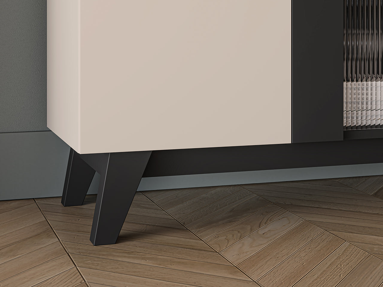 Korpus wykonany z wytrzymałej płyty laminowanej w połączeniu z elementami szklanymi łączy estetykę z praktycznością. Gładkie powierzchnie są odporne na codzienne użytkowanie i łatwe do utrzymania w czystości.